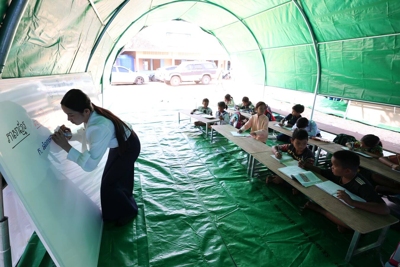 ដោយឡែកសម្រាប់ថ្នាក់រៀនបណ្ដោះអាសន្ន ដែលត្រូវបានរៀបចំជាលើកដំបូងនៅទីនេះ មានថ្នាក់រៀនចំនួន ១៤ថ្នាក់ ក្នុងនោះមានកម្រិតមត្តេយ្យសិក្សាចំនួន ៣ថ្នាក់ និងថ្នាក់បឋមសិក្សា ១១ថ្នាក់។