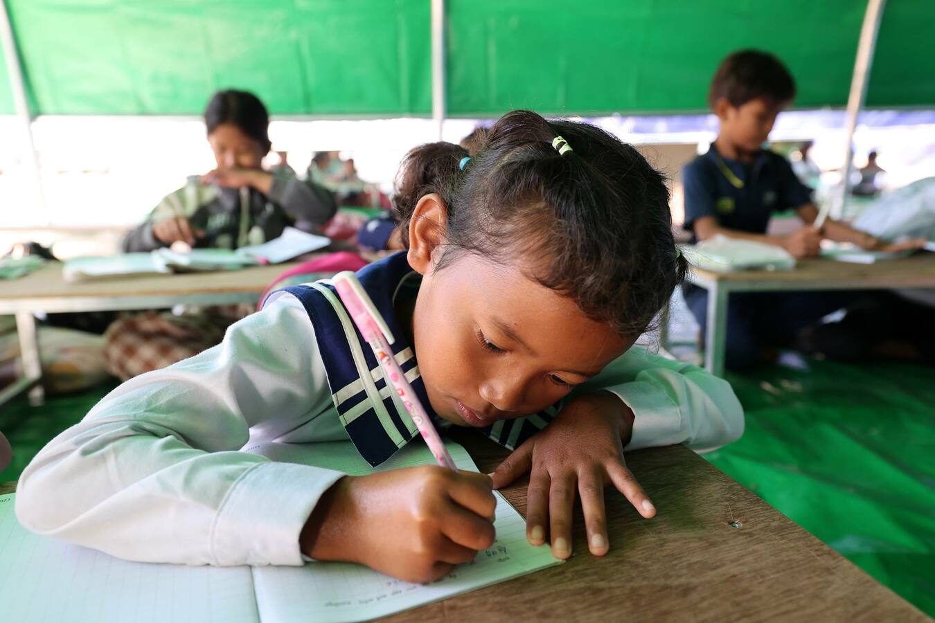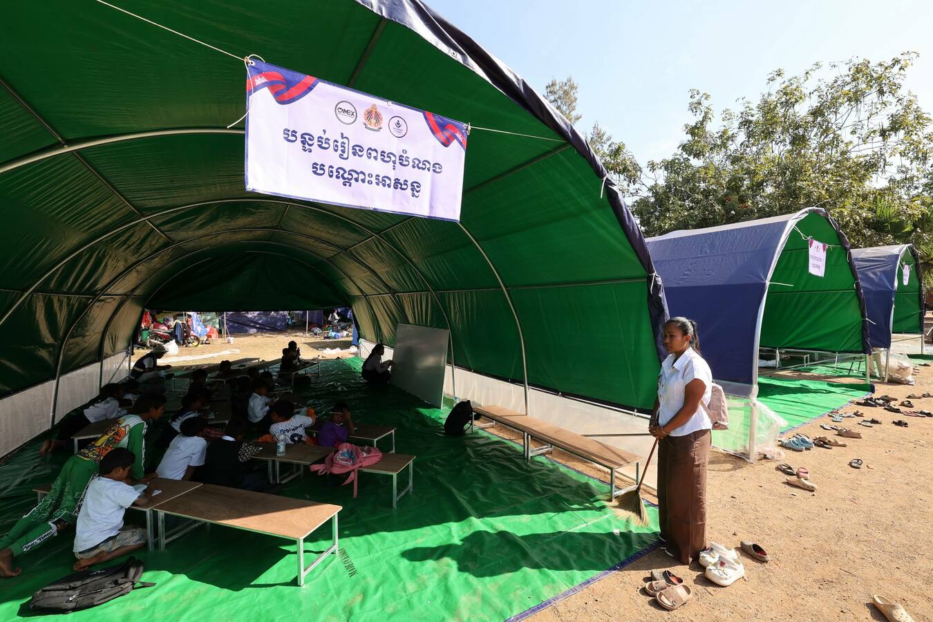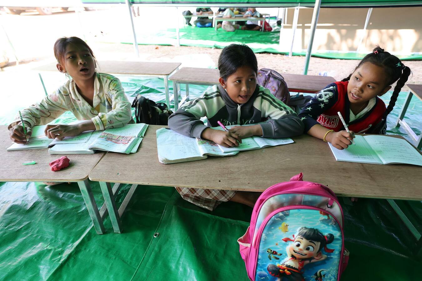(បន្ទាយមានជ័យ) កុមារភៀសសឹក ដែលកំពុងស្នាក់នៅជាមួយឪពុកម្ដាយ និងអាណាព្យាបាល ភៀសខ្លួនមកពីភូមិជោគជ័យ និងភូមិព្រៃចាន់ ស្រុកអូរជ្រៅ ខេត្តបន្ទាយមានជ័យ បានចូលរៀននៅតាមថ្នាក់រៀនបណ្ដោះអាសន្ន ដែលត្រូវបានរៀបចំតាមកម្រិត នៅវត្តចាន់ស៊ីសាមគ្គីរតនារាម ស្ថិតក្នុងឃុំកូប ស្រុកអូរជ្រៅ ខេត្តបន្ទាយមានជ័យ នៅថ្ងៃទី៥ ខែមករា ឆ្នាំ២០២៦នេះ ក្រោយសាលារៀនមួយចំនួនបានផ្អាកដោយសារការទម្លាក់ និងគ្រាប់ផ្លោងរបស់យោធាថៃ ទៅលើសាលារៀន និងភូមិឋានជនស៊ីវិល នាពេលកន្លងមក។
