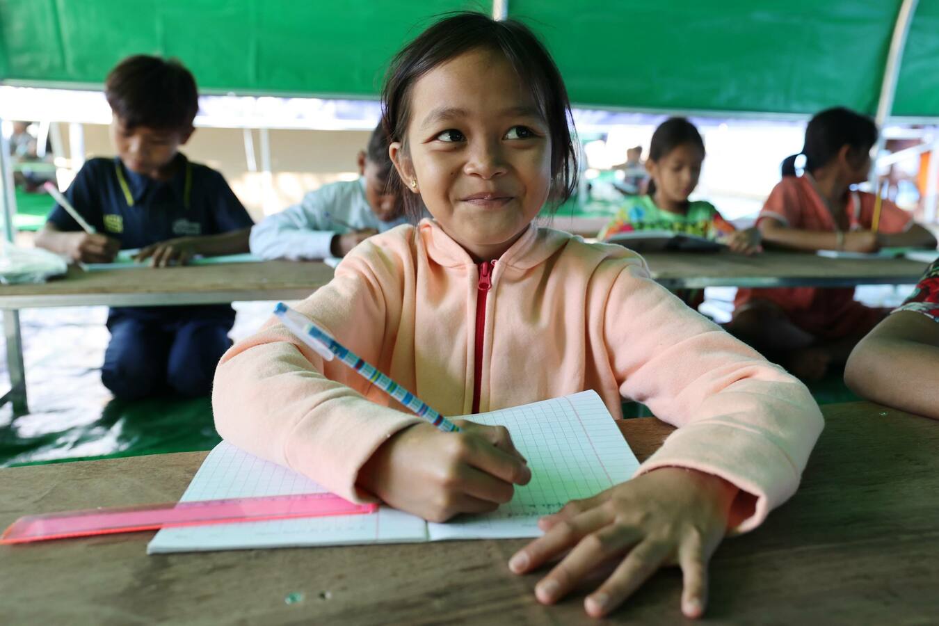 កុមារភៀសសឹកមកពីភូមិជោគជ័យ និងភូមិព្រៃចាន់ បានចូលរៀននៅតាមថ្នាក់រៀនបណ្ដោះអាសន្ន នៅមណ្ឌលសុវត្ថិភាព វត្តចាន់ស៊ី នៅព្រឹកថ្ងៃនេះ