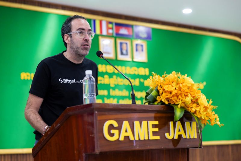 លោក Ignacio Aguirre ប្រធានផ្នែកទីផ្សារនៃក្រុមហ៊ុន Bitget បានមកទស្សនកិច្ចនៅ ប្រទេសកម្ពុជា ដើម្បីចែករំលែកបទពិសោធន៍របស់ខ្លួនជាមួយលោកគ្រូ អ្នកគ្រូ និង សិស្សានុសិស្សដែលចូលរួមក្នុងកម្មវិធីខាងលើ។