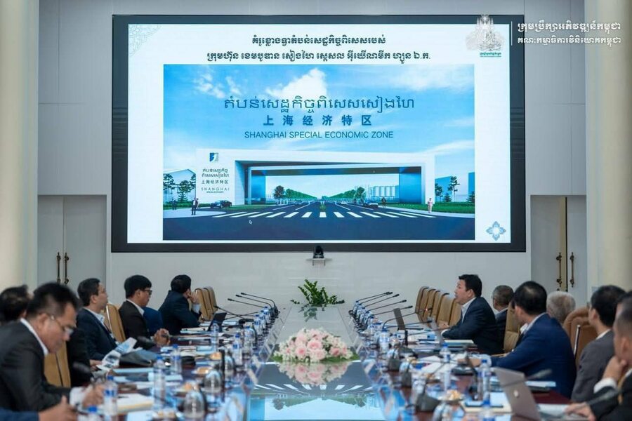 ប្រភពដដែលបានឱ្យដឹងបន្ថែមថា ការស្នើសុំបង្កើតតំបន់សេដ្ឋកិច្ចរបស់ក្រុមហ៊ុន Cambodia Shanghai Special Economic Zone Co., Ltd. បានធ្វើឡើងកាលពីថ្ងៃទី៦ ខែមករា ឆ្នាំ២០២៦ ដោយគណៈកម្មាធិការវិនិយោគកម្ពុជានៃក្រុមប្រឹក្សាអភិវឌ្ឍន៍កម្ពុជា បានរៀបចំកិច្ចប្រជុំ “ច្រកចេញ-ចូលតែមួយ” លើកទី១ នៅក្នុងឆ្នាំ២០២៦ ក្រោមអធិបតីភាពឯកឧត្តម ជា វុទ្ធី អគ្គលេខាធិការគណៈកម្មាធិការវិនិយោគកម្ពុជា។