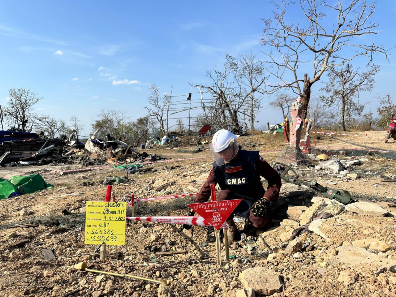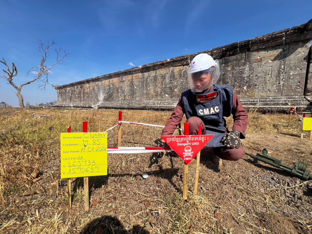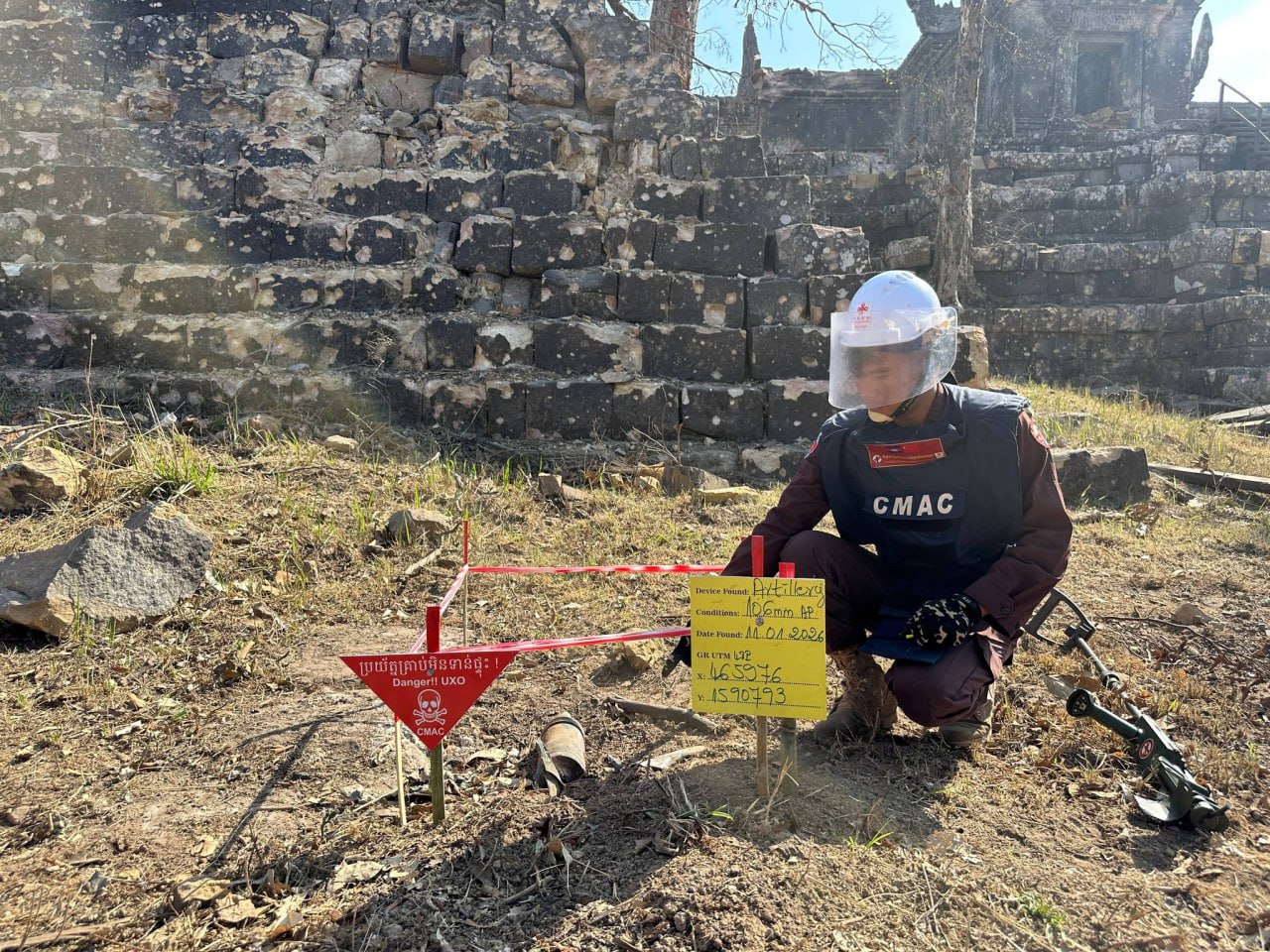នាថ្ងៃទី ១២ ខែមករា ឆ្នាំ ២០២៦ នេះ ឯកឧត្តម ហេង រតនា អគ្គនាយកស៊ីម៉ាក់ (CMAC) បានបង្ហាញរូបភាពក្រុមការងារកំពុងបោសសំអាតកាកសំណល់អាវុធយុទ្ធភណ្ឌមិនទាន់ផ្ទុះនៅប្រាសាទព្រះវិហារ។