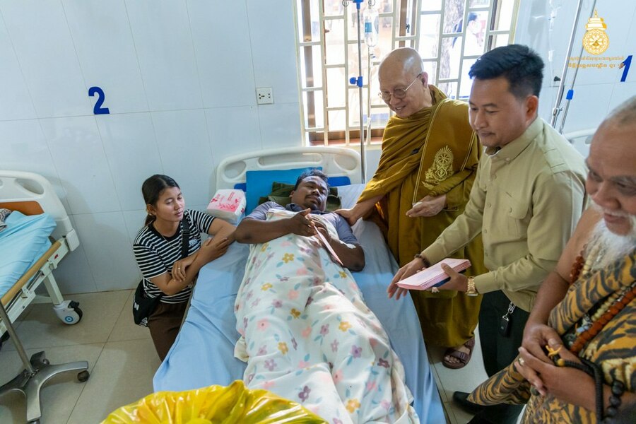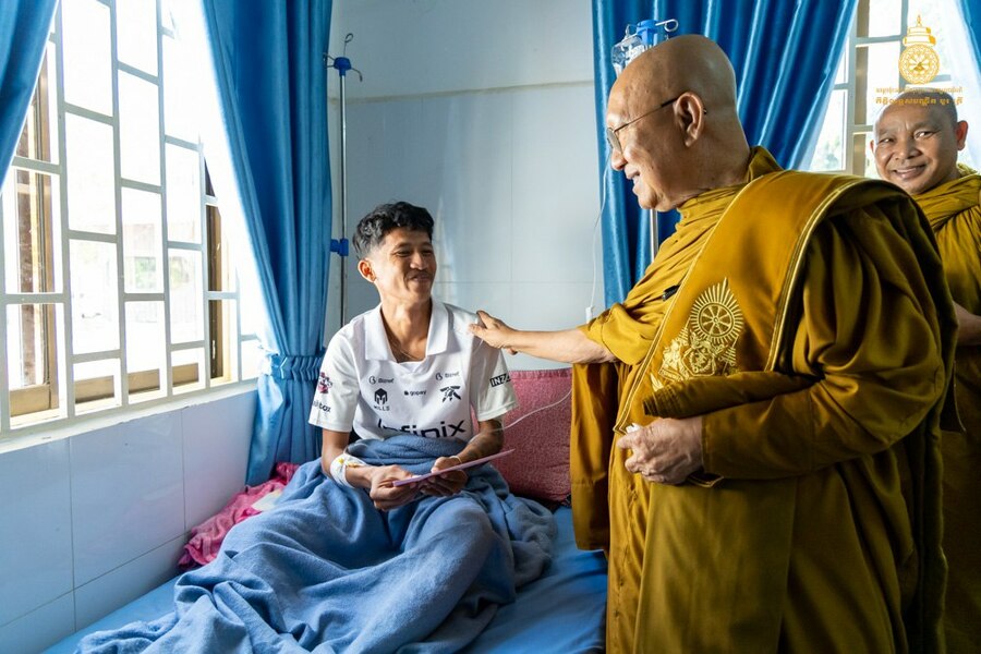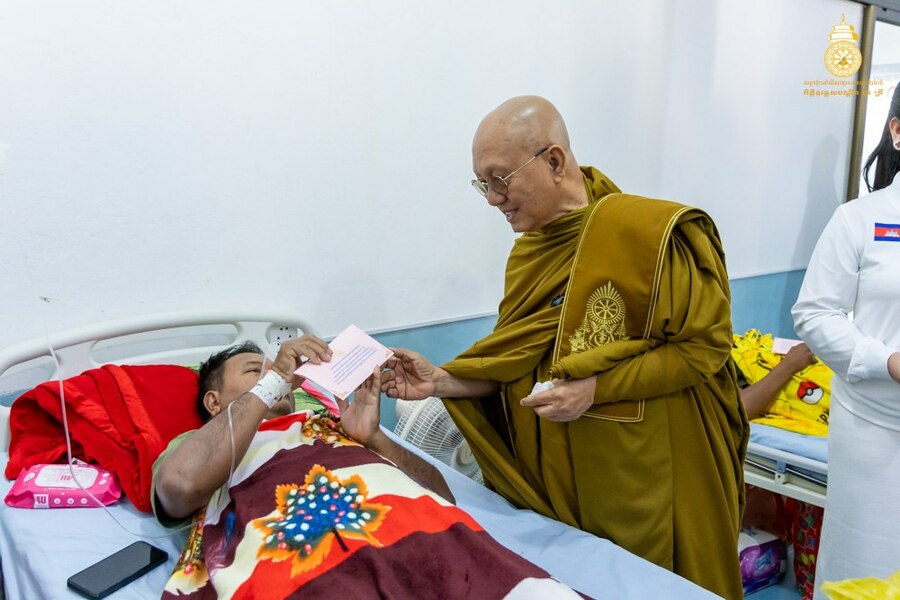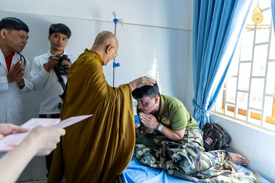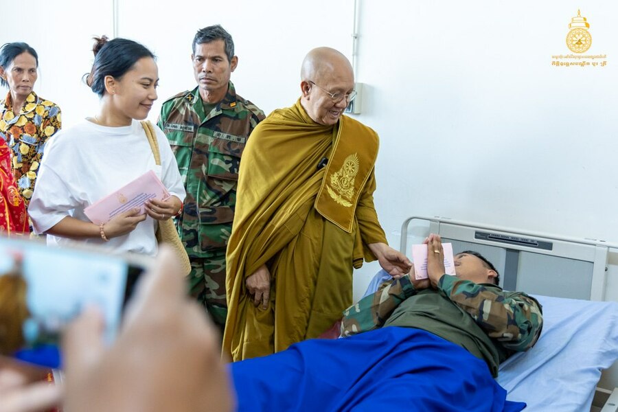 សម្តេចព្រះមហាសង្ឃរាជ បួរ គ្រី យាងសួរសុខទុក្ខវីរៈកងទ័ពរងរបួសសម្រាកព្យាបាលនៅមន្ទីរពេទ្យយោធាភូមិភាគទី៤ ខេត្តសៀមរាប