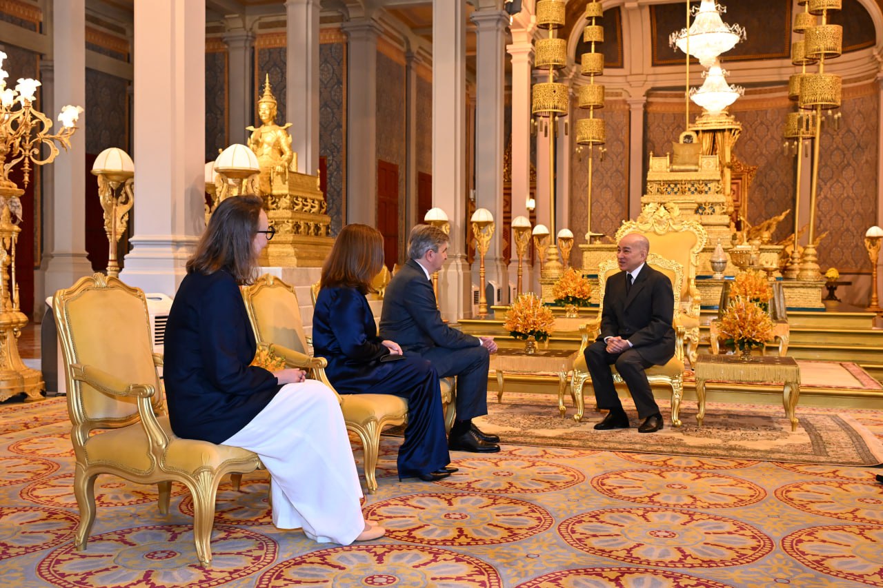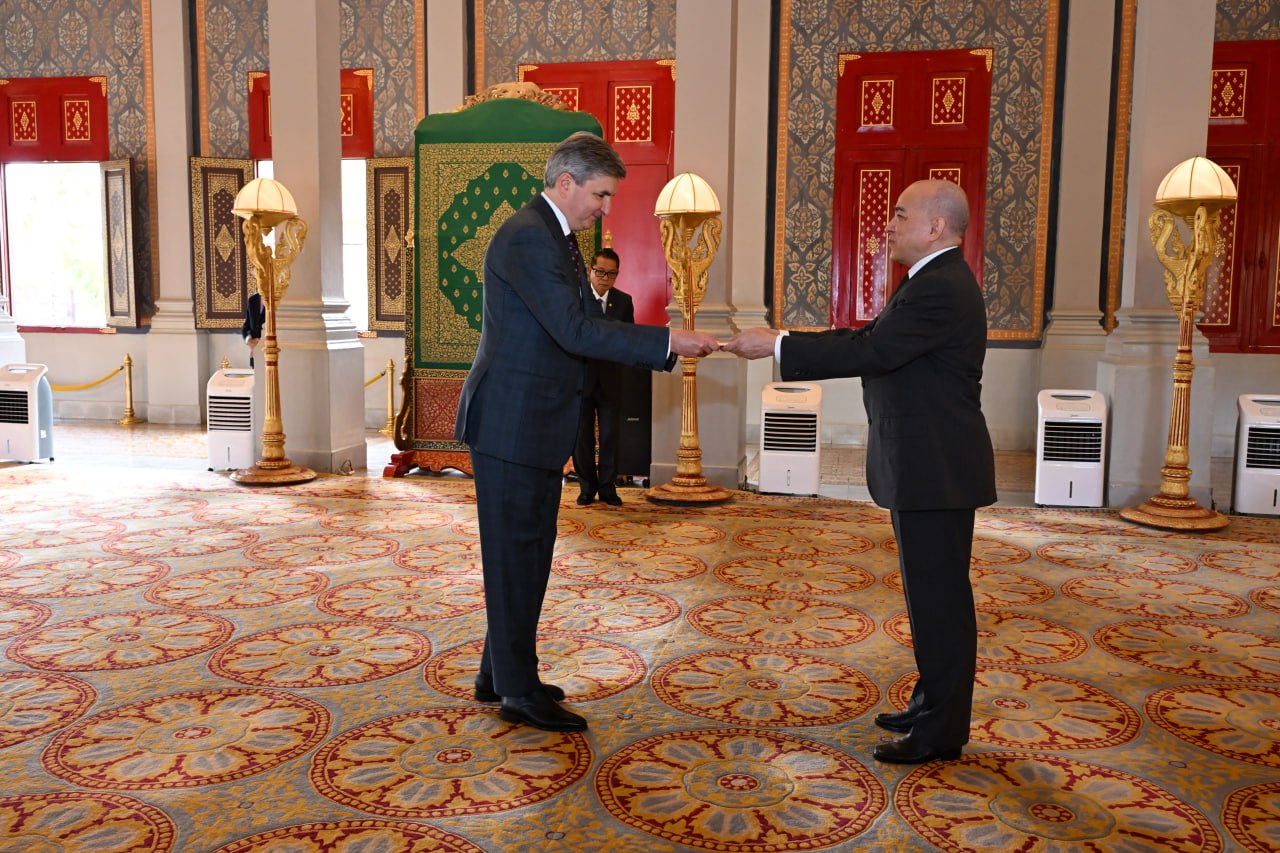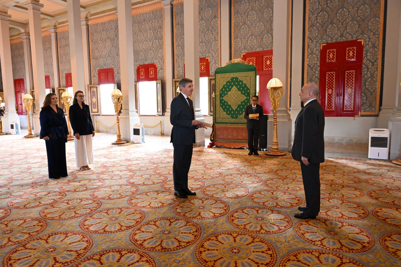 នាថ្ងៃទី ១២ ខែមករា ឆ្នាំ ២០២៦ នេះ ព្រះករុណាជាអម្ចាស់ជីវិតលើត្បូង ព្រះបាទសម្តេចព្រះបរមនាថ ព្រះមហាក្សត្រនៃព្រះរាជាណាចក្រកម្ពុជា ជាទីគោរពសក្ការៈដ៏ខ្ពង់ខ្ពស់បំផុត ព្រះអង្គបានសព្វព្រះរាជហឬទ័យប្រោសព្រះរាជទានឯកឧត្តម Darius Gaidys ចូលក្រាបថ្វាយបង្គំគាល់ថ្វាយសារតាំង នៅព្រះទីនាំងទេវាវិនិច្ឆ័យ ព្រះបរមរាជវាំង វេលាព្រឹក ថ្ងៃទី១២ ខែមករា ឆ្នាំ២០២៦ ក្នុងឱកាសដែលឯកឧត្តម ត្រូវបានរដ្ឋាភិបាលនៃសាធារណរដ្ឋលីទុយអានី តែងតាំងជាឯកអគ្គរដ្ឋទូតវិសាមញ្ញ និងពេញសមត្ថភាពរបស់លីទុយអានី ប្រចាំព្រះរាជាណាចក្រកម្ពុជា។