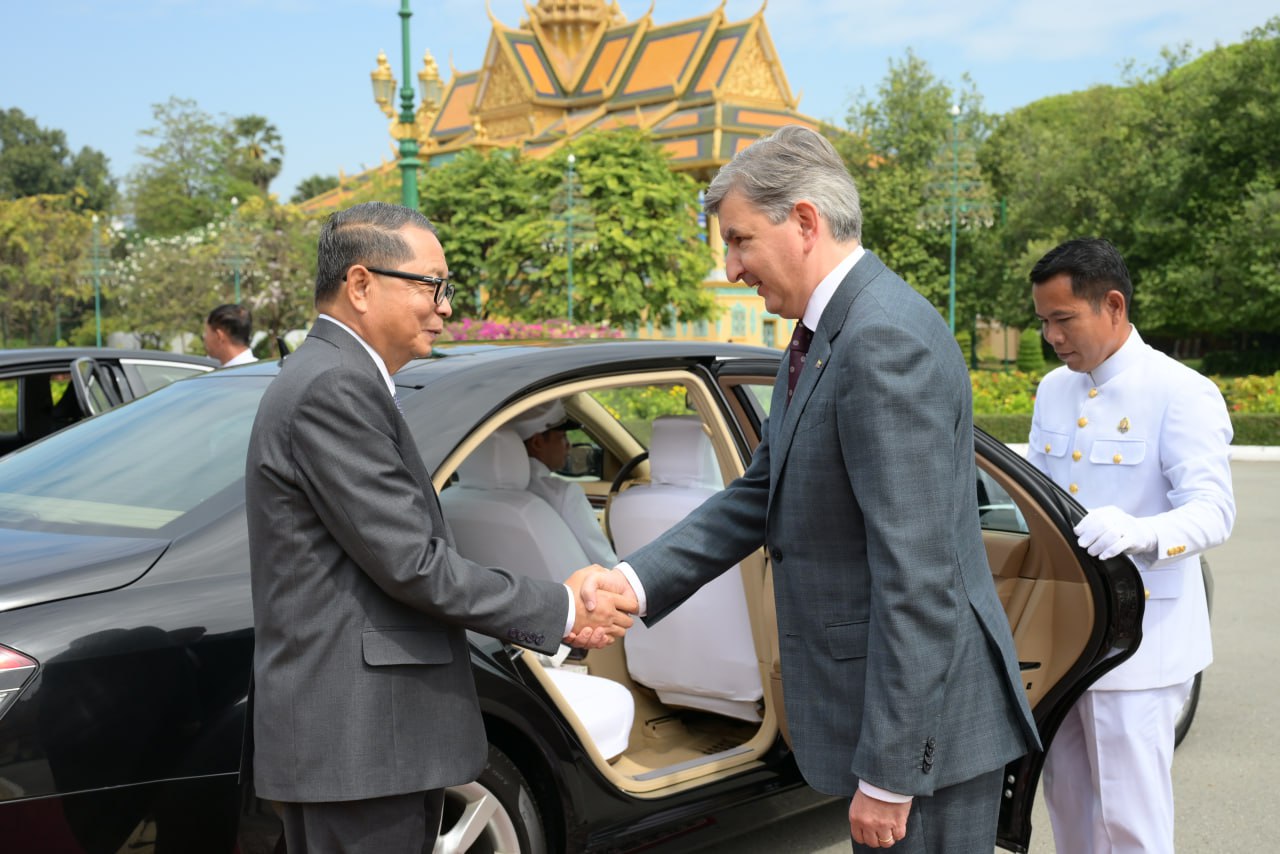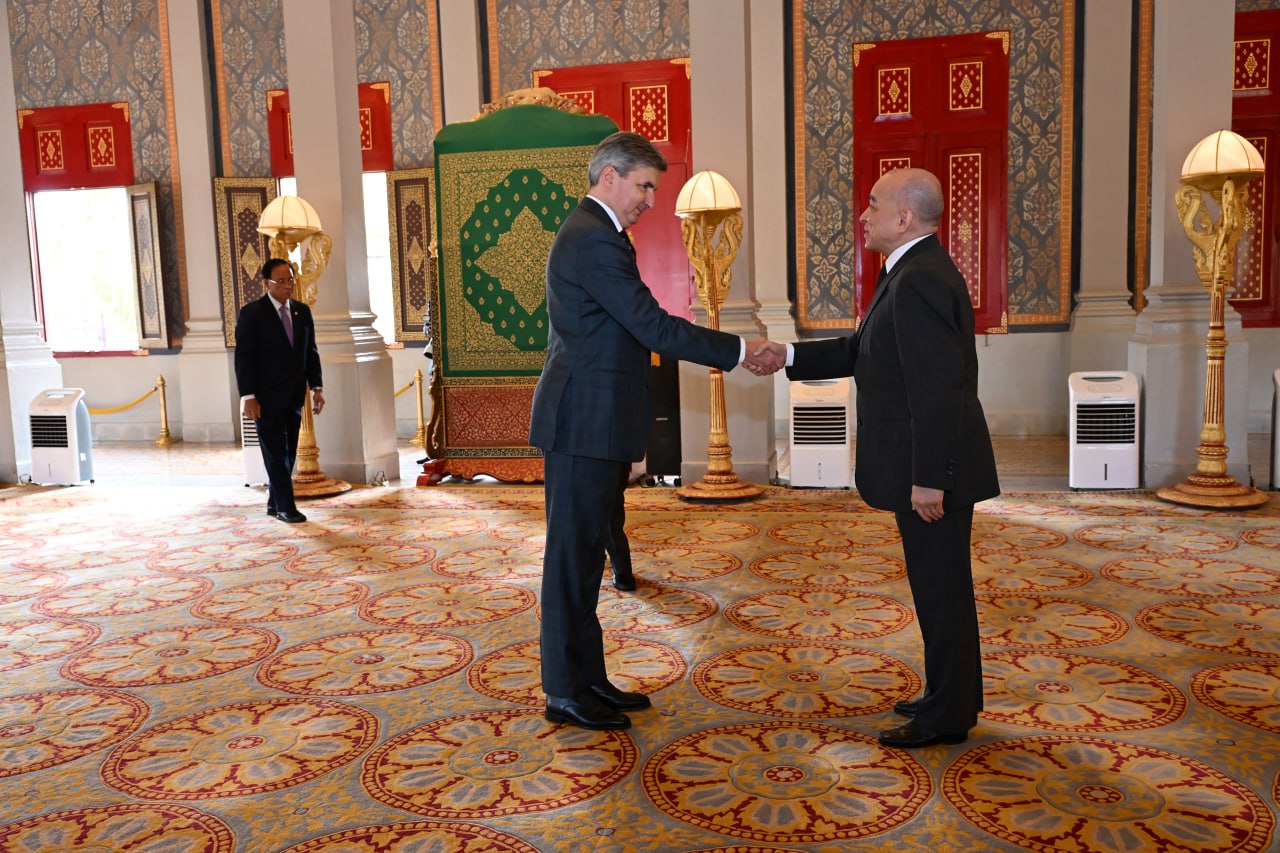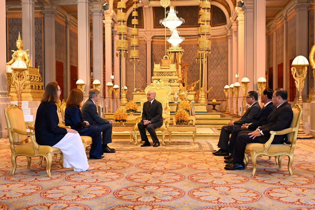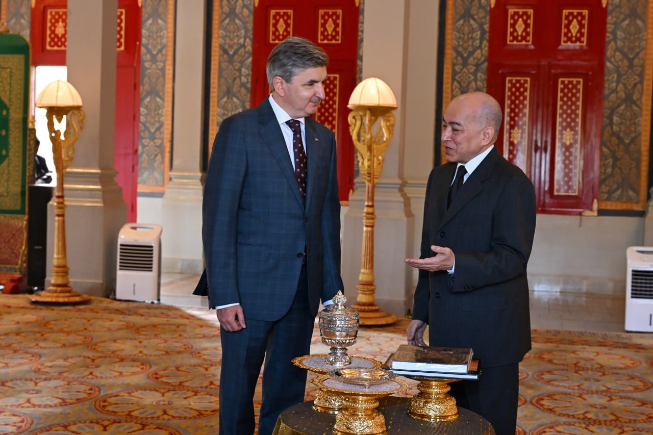 នាថ្ងៃទី ១២ ខែមករា ឆ្នាំ ២០២៦ នេះ ព្រះករុណាជាអម្ចាស់ជីវិតលើត្បូង ព្រះបាទសម្តេចព្រះបរមនាថ ព្រះមហាក្សត្រនៃព្រះរាជាណាចក្រកម្ពុជា ជាទីគោរពសក្ការៈដ៏ខ្ពង់ខ្ពស់បំផុត ព្រះអង្គបានសព្វព្រះរាជហឬទ័យប្រោសព្រះរាជទានឯកឧត្តម Darius Gaidys ចូលក្រាបថ្វាយបង្គំគាល់ថ្វាយសារតាំង នៅព្រះទីនាំងទេវាវិនិច្ឆ័យ ព្រះបរមរាជវាំង វេលាព្រឹក ថ្ងៃទី១២ ខែមករា ឆ្នាំ២០២៦ ក្នុងឱកាសដែលឯកឧត្តម ត្រូវបានរដ្ឋាភិបាលនៃសាធារណរដ្ឋលីទុយអានី តែងតាំងជាឯកអគ្គរដ្ឋទូតវិសាមញ្ញ និងពេញសមត្ថភាពរបស់លីទុយអានី ប្រចាំព្រះរាជាណាចក្រកម្ពុជា។
