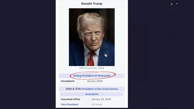 តាមរយៈបណ្តាញសង្គមដដែលនេះ លោក ដូណាល់ ត្រាំ ក៏បានចែករំលែករូបថតរបស់លោកពីគេហទំព័រ Wikipedia ដោយសរសេរថា «ប្រធានាធិបតីស្តីទីនៃប្រទេសវេណេស៊ុយអេឡា»។ សកម្មភាពរបស់លោក ដូណាល់ ត្រាំ ត្រូវបានគេឃើញថា គឺជាការសើចចំអកយ៉ាងខ្លាំងទៅកាន់លោកស្រី Delcy Rodriguez អនុប្រធាធិបតីវេណេស៊ុយអេឡា ដែលបានឡើងដឹកនាំប្រទេសវេណេស៊ុយអេឡា ក្រោយការចាប់ខ្លួនលោកប្រធានាធិបតីវេណេស៊ុយអេឡា Nicolas Maduro និងភរិយារបស់គាត់កាលពីថ្ងៃទី៣ ខែមករាកន្លងទៅនេះ ដោយកងកម្លាំងអាមេរិក៕