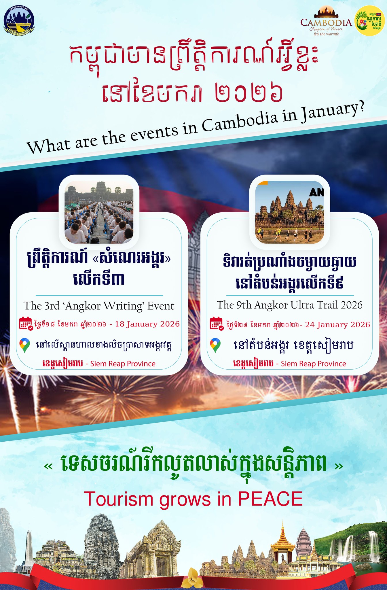 ណាត់គ្នានៅ! ក្នុងខែមករានេះ ព្រឹត្តិការណ៍ទេសចរណ៍សំខាន់ៗចំនួន ២ នឹងកើតមានឡើងក្នុងខេត្តសៀមរាប