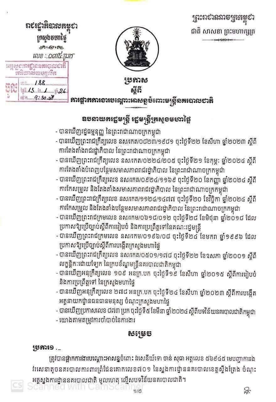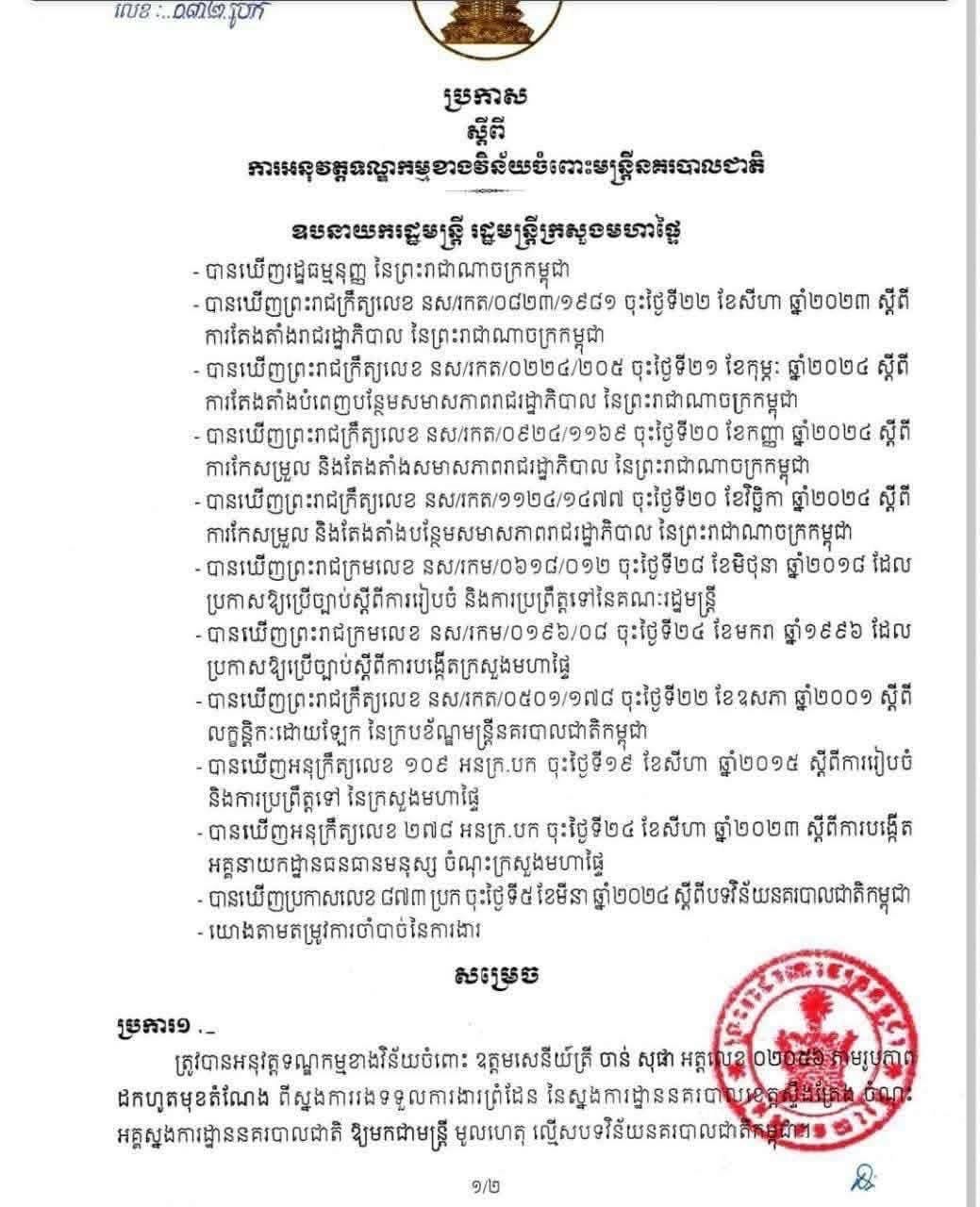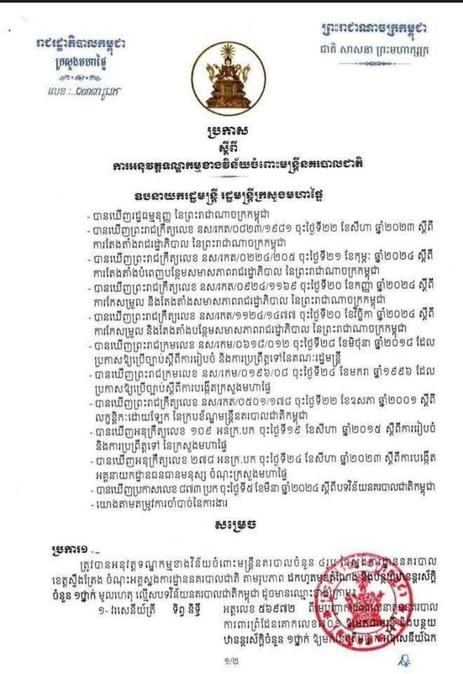 យោងតាមប្រកាសស្តីពីការអនុវត្តទណ្ឌកម្មចេញចំនួន ៣ដាច់ដោយឡែកពីគ្នា បានបង្ហាញថា នគរបាលដែលរងទណ្ឌកម្មនេះ រួមមាន៖