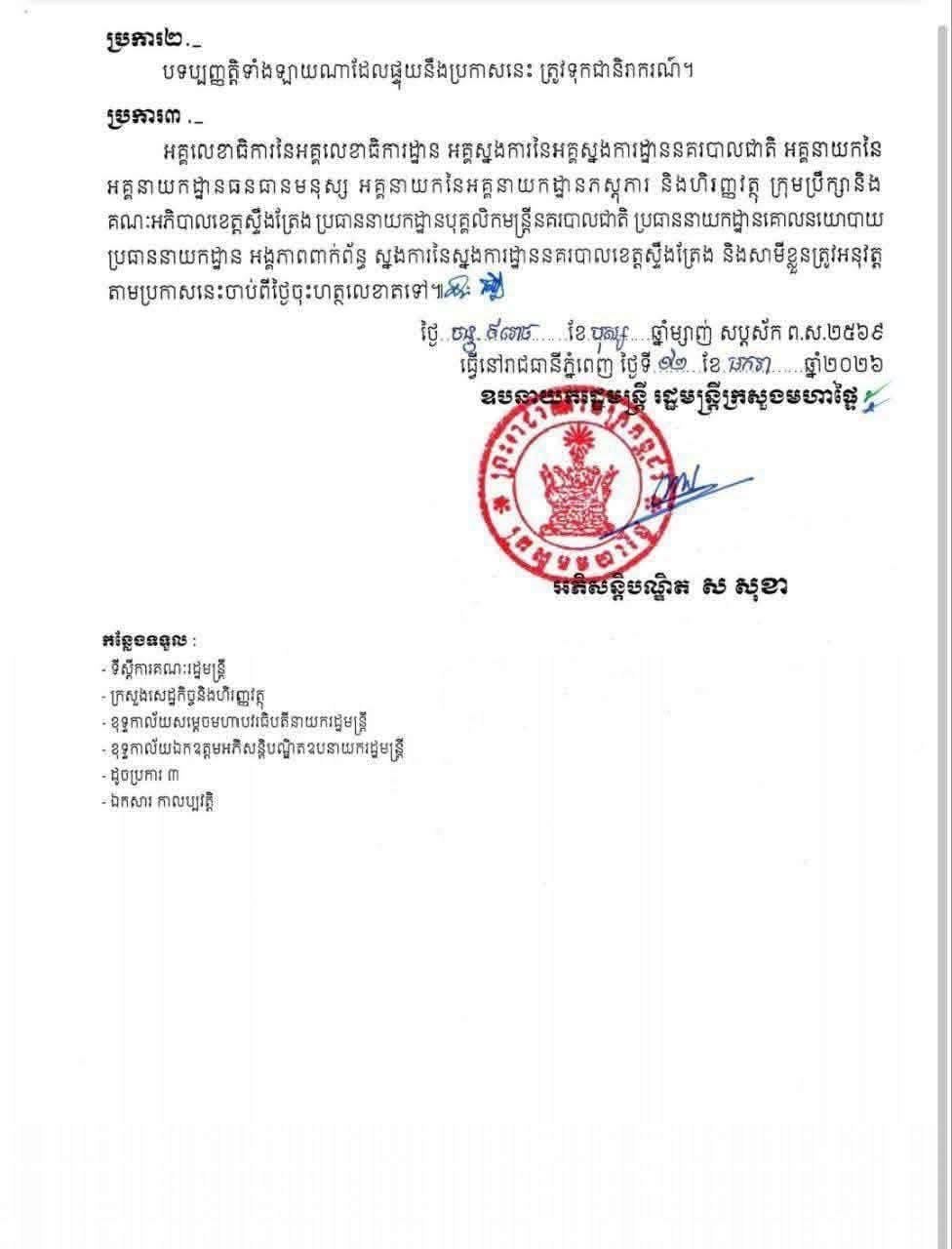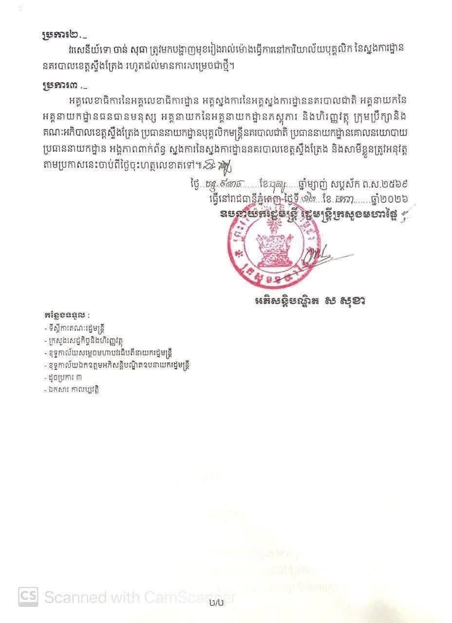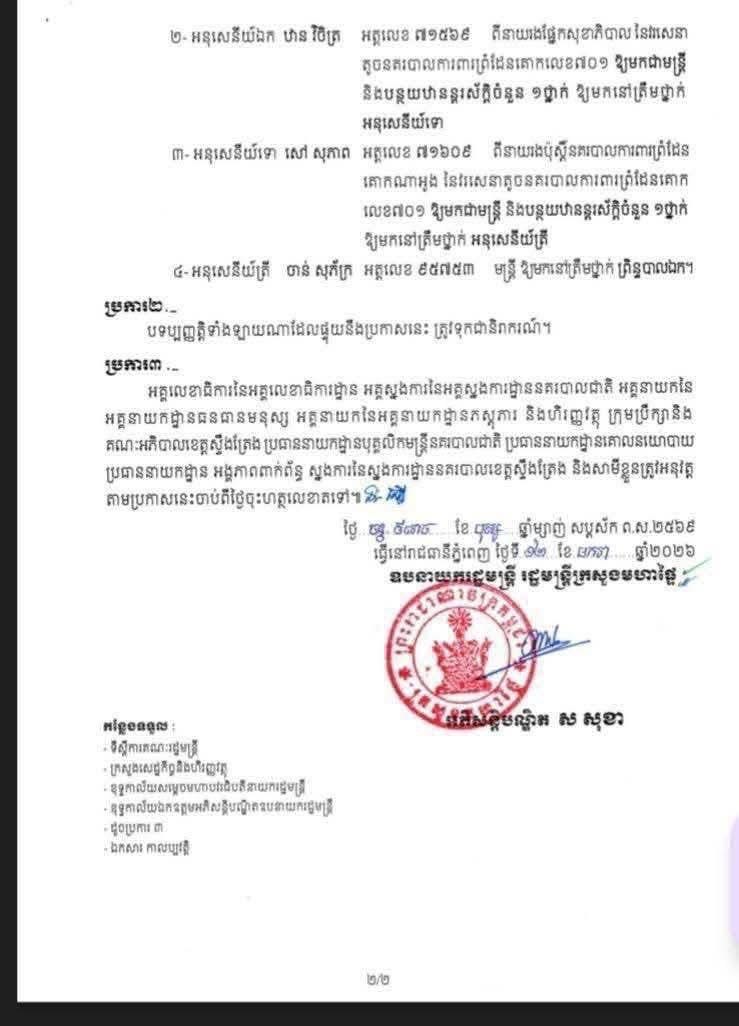 នគរបាលខេត្តស្ទឹងត្រែង៦រូប ត្រូវបានដកតំណែង និងបន្ថយឋានន្តរស័ក្តិ ព្រោះប្រព្រឹត្តខុសតួនាទីភារកិច្ច
