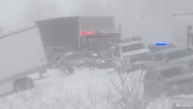 រថយន្តតូចនិងធំ ១០០គ្រឿង បានបើកបុកបន្តគ្នា ដោយសារតែឥទ្ធិពលព្យុះព្រឹលទឹកកកនៅអាមេរិក និងបណ្តាលឱ្យមនុស្សជាច្រើនរងរបួស