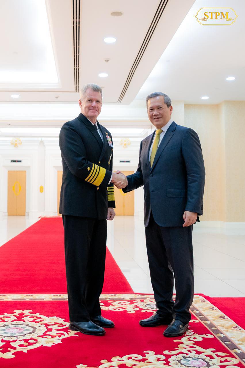 សម្តេចធិបតី ហ៊ុន ម៉ាណែត ទទួលជួបពិភាក្សាការងារ ជាមួយនាយឧត្តមនាវី Samuel Paparo មេបញ្ជាការនៃបញ្ជាការដ្ឋានឥណ្ឌូ-ប៉ាស៊ីហ្វិកនៃសហរដ្ឋអាមេរិក