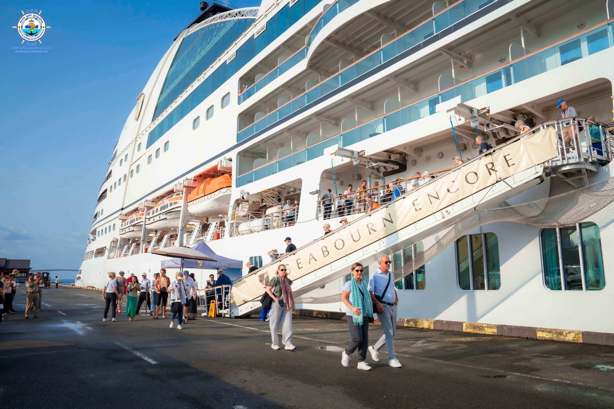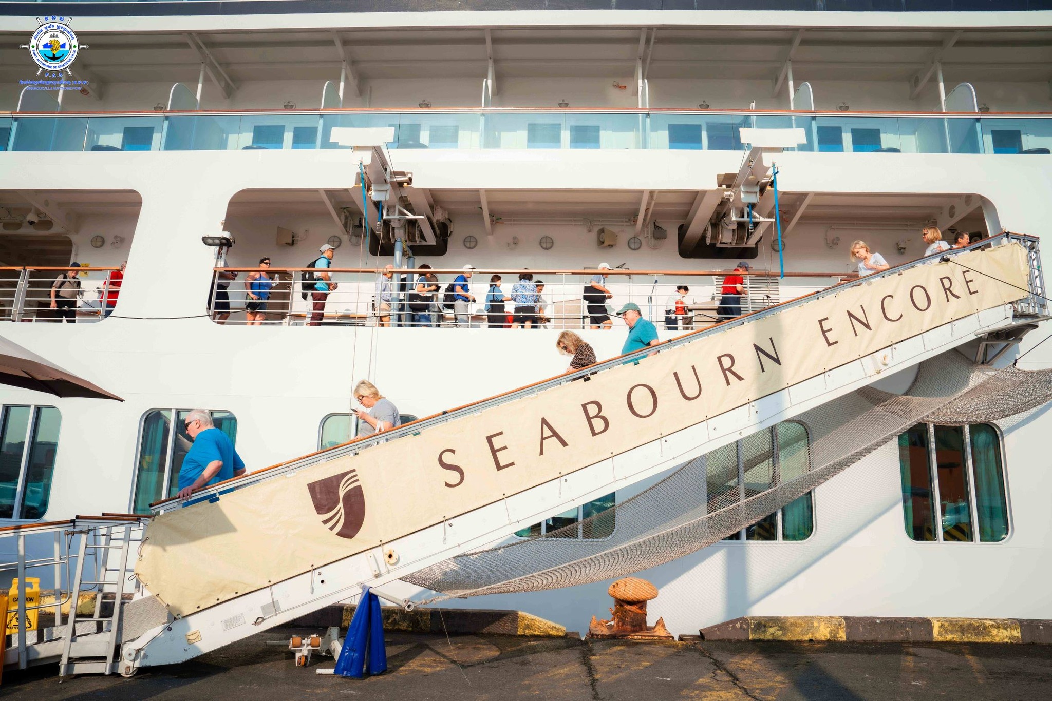 ចំពោះពេលវេលានៃការចូលចតគឺខុសគ្នាបន្តិចបន្តួចតែប៉ុណ្ណោះ ដោយនៅនាវេលាម៉ោង ៧:០០ នាទី នាវាទេសចរណ៍ SEABOURN ENCORE ដែលមានប្រវែងបណ្តោយ ២១០,៥ ម៉ែត្រ ប្រវែងទទឹង ២៨,០០ ម៉ែត្រ ជម្រៅ ៦,០០ ម៉ែត្រ បានចូលចតមុន។