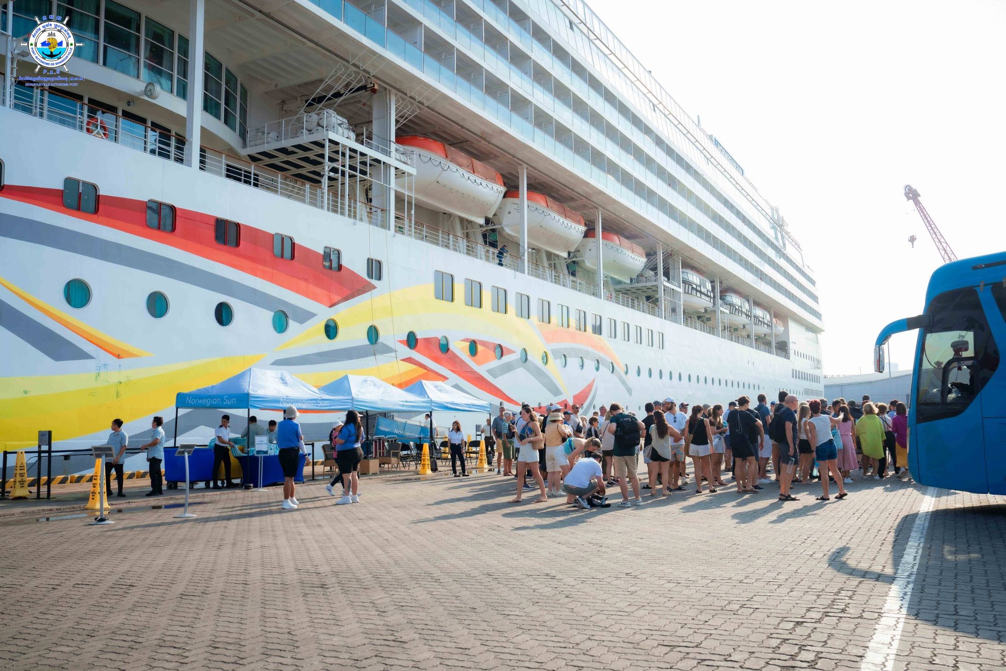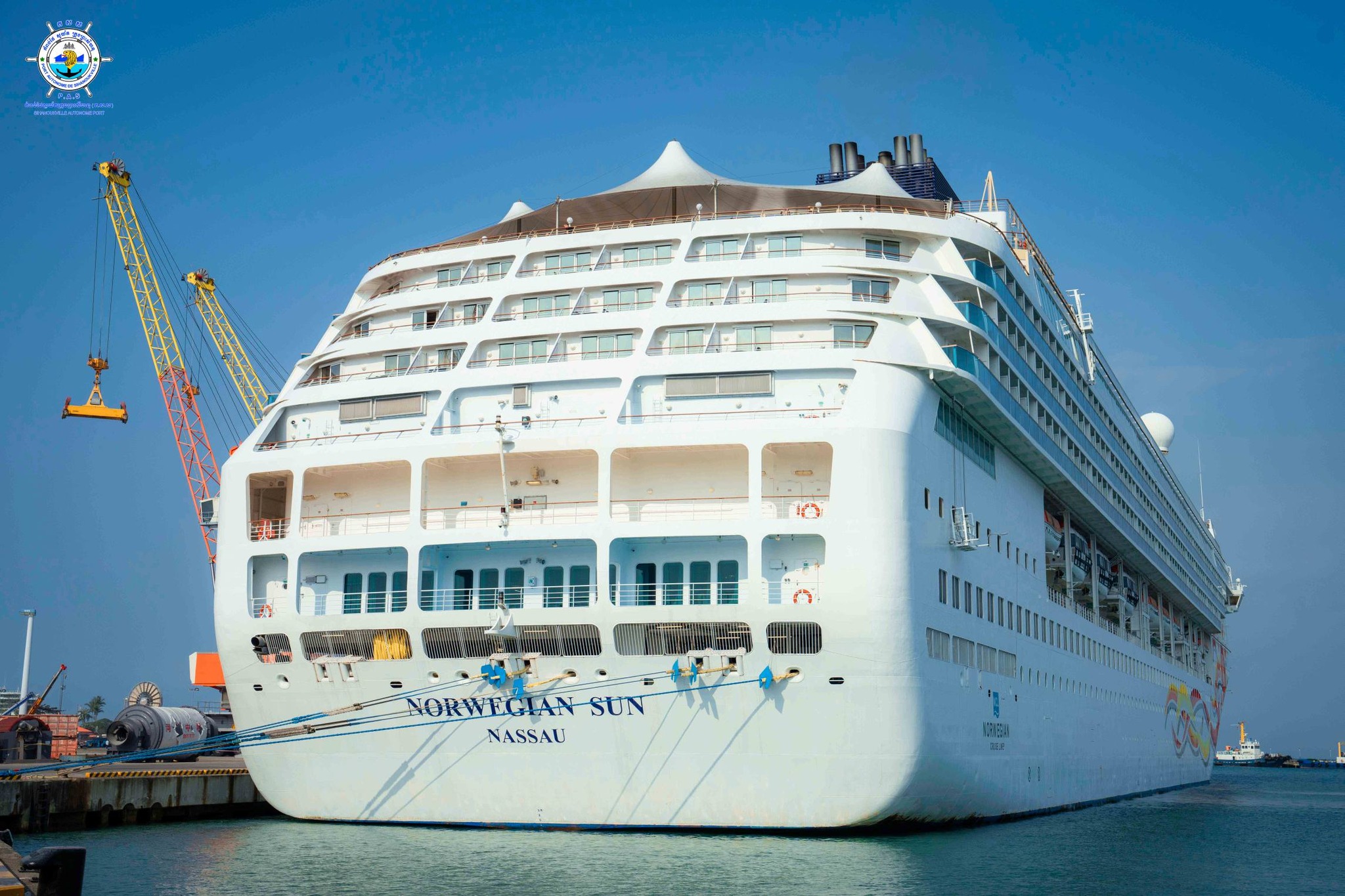 សម្រាប់ នាវាទេសចរណ៍ NORWEGIAN SUN វិញ បានចូលចតនៅ កំពង់ផែស្វយ័តក្រុងព្រះសីហនុ នៅម៉ោង ៨:១០ នាទី។ ចំពោះនាវាទេសចរមួយប្រភរទនេះដែរ មានប្រវែងបណ្តោយ ២៥៨,៦០ ម៉ែត្រ ប្រវែងទទឹង ៣២,០០ ម៉ែត្រ ជម្រៅ ៨,២០ ម៉ែត្រ មានគោលបំណងមកទស្សនា ប្រទេសកម្ពុជា រយៈពេល ១ ថ្ងៃ បន្ទាប់ពីចេញដំណើរមកពីប្រទេសវៀតណាម។