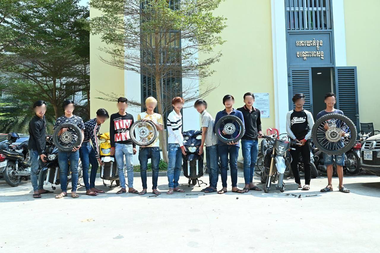 នគរបាលព្រហ្មទណ្ឌ ឃាត់ក្មេងទំនើង ១១នាក់ ពាក់ព័ន្ធករណីបង្ហោះម៉ូតូតាមផ្លូវសាធារណៈ មកធ្វើការអប់រំណែនាំ និងធ្វេីកិច្ចសន្យា និងដកហូតម៉ូតូរក្សារយៈពេល ៣ខែ