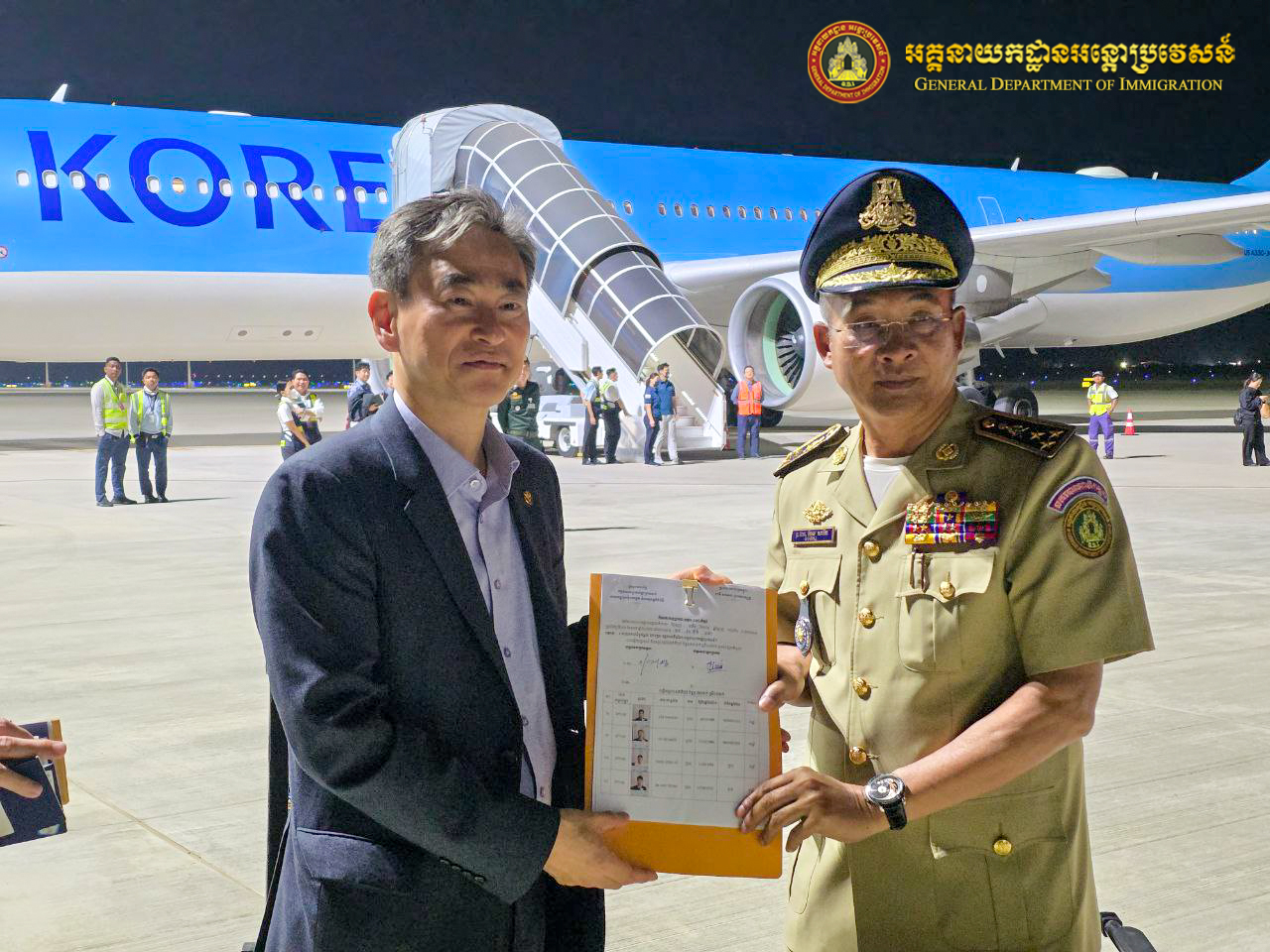 (រាជធានីភំ្នពេញ)៖ កាលពីយប់ថ្ងៃទី ២២ ឆៀងចូលទី ២៣ ខែមករា ឆ្នាំ ២០២៦ អគ្គនាយកដ្ឋានអន្តោប្រវេសន៍ បានបណ្ដេញជនជាតិកូរ៉េ ចំនួន ៧៣នាក់ ចេញពីប្រទេសកម្ពុជា ក្រោយលួចស្នាក់នៅធ្វើការងារខុសច្បាប់ និងគ្មានលិខិតឆ្លងដែន។