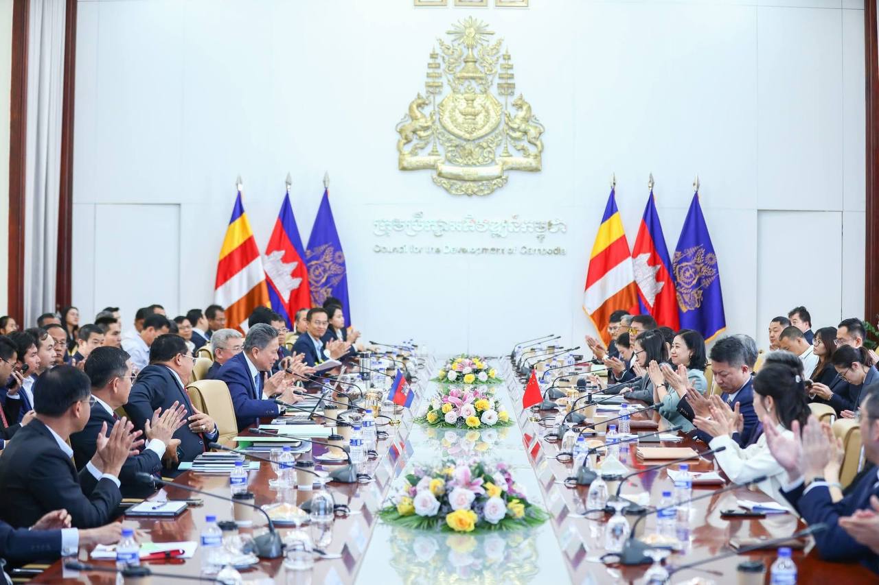 (រាជធានីភ្នំពេញ)៖ តាមការចុះផ្សាយពី ទូរទស្សន៍ជាតិកម្ពុជា ទទក បានឱ្យដឹងថា កិច្ចសន្ទនាលើកទី១ រវាងរដ្ឋនិងវិស័យឯកជន កម្ពុជា-ចិន ដើម្បីពិនិត្យដោះស្រាយបញ្ហាប្រឈម និងធ្វើឱ្យប្រសើរឡើងបរិយាកាសវិនិយោគ និងការធ្វើពាណិជ្ជកម្មនៅកម្ពុជា។ ក្រុមប្រឹក្សាអភិវឌ្ឍន៍កម្ពុជា កាលពីព្រឹកថ្ងៃទី ៩ ខែកុម្ភៈ ឆ្នាំ ២០២៦ ឯកឧត្តម ស៊ុន ចាន់ថុល ឧបនាយករដ្ឋមន្ត្រី អនុប្រធានទី១ ក្រុមប្រឹក្សាអភិវឌ្ឍន៍កម្ពុជា និង ឯកឧត្តម Wang Wenbin ឯកអគ្គរដ្ឋទូតនៃសាធារណរដ្ឋប្រជាមានិតចិនប្រចាំកម្ពុជា បានដឹកនាំកិច្ចសន្ទនាលើកទី១ រវាងរដ្ឋនិងវិស័យឯកជន កម្ពុជា-ចិន ដោយមានការចូលរួមពីតំណាងក្រុមហ៊ុនចិនចំនួន ៨០ មកពីសមាគម សភាពាណិជ្ជកម្មចិននៅកម្ពុជា ថ្នាក់ដឹកនាំតំណាងអន្តរក្រសួងស្ថាប័នជាសមាជិកក្រុមប្រឹក្សាអភិវឌ្ឍន៍កម្ពុជា។