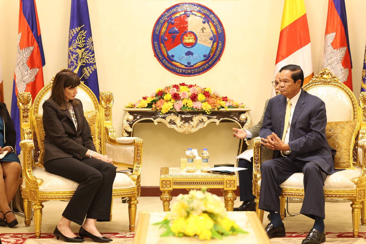 ក្នុងជំនួបពិភាក្សាការងារជាមួយ ឯកឧត្តមកិត្តិសង្គហបណ្ឌិត គន់ គីម ទេសរដ្ឋមន្រ្តី អនុប្រធានទី១ គណៈកម្មាធិការជាតិគ្រប់គ្រងគ្រោះមហន្តរាយ ក្នុងគោលបំណងពង្រឹងកិច្ចសហប្រតិបត្តិការ ដើម្បីបន្ត គាំទ្រអនុវត្តលើគម្រោងកាត់បន្ថយហានិភ័យគ្រោះមហន្តរាយ កាលពីរសៀលថ្ងៃទី៩ ខែកុម្ភៈ ឆ្នាំ២០២៦ លោកស្រី វ៉ឡាដានកា អង់ឌីវ៉ អ្នកសម្របសម្រួលអង្គការសហប្រជាជាតិប្រចាំកម្ពុជា បានប្តេជ្ញាសហការ ជាមួយគណៈកម្មាធិការជាតិគ្រប់គ្រងគ្រោះមហន្តរាយ ដើម្បីជួយជនភៀសសឹករងគ្រោះពីសង្គ្រាម ឈ្លានពាន ពិសេសនឹងជួយរៀបចំកន្លែងស្នាក់នៅបណ្តោះអាសន្ន សម្រាប់ជនភៀសសឹកកម្ពុជា ឱ្យបានមុនរដូវភ្លៀងមកដល់។