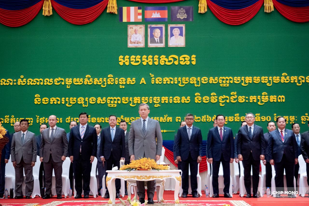 (ភ្នំពេញ)៖ ពិធីសំណះសំណាលជាមួយសិស្សនិទ្ទេស A សម្រាប់ការប្រលងសញ្ញាបត្រមធ្យមសិក្សាទុតិយភូមិ និងការប្រលងសញ្ញាបត្របច្ចេកទេស និងវិជ្ជាជីវកម្រិត ៣ បានធ្វើឡើងនាព្រឹកថ្ងៃទី ១០ ខែកុម្ភៈ ឆ្នាំ ២០២៦ ក្រោមអធិបតីភាពដ៏ខ្ពង់ខ្ពស់របស់សម្តេចមហាបវរធិបតី ហ៊ុន ម៉ាណែត នាយករដ្ឋមន្ត្រីនៃព្រះរាជាណាចក្រកម្ពុជា ព្រមទាំងថ្នាក់ដឹកនាំពីគ្រប់ស្ថាប័នដែលពាក់ព័ន្ធ ក៏ដូចជាក្រុមហ៊ុន ជីប ម៉ុង ផងដែរ។
