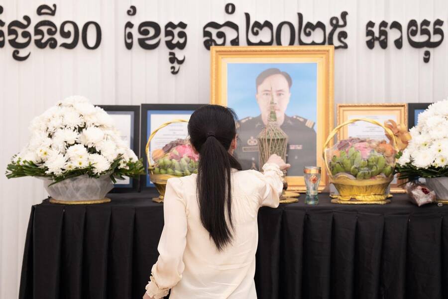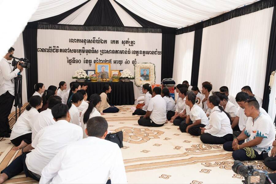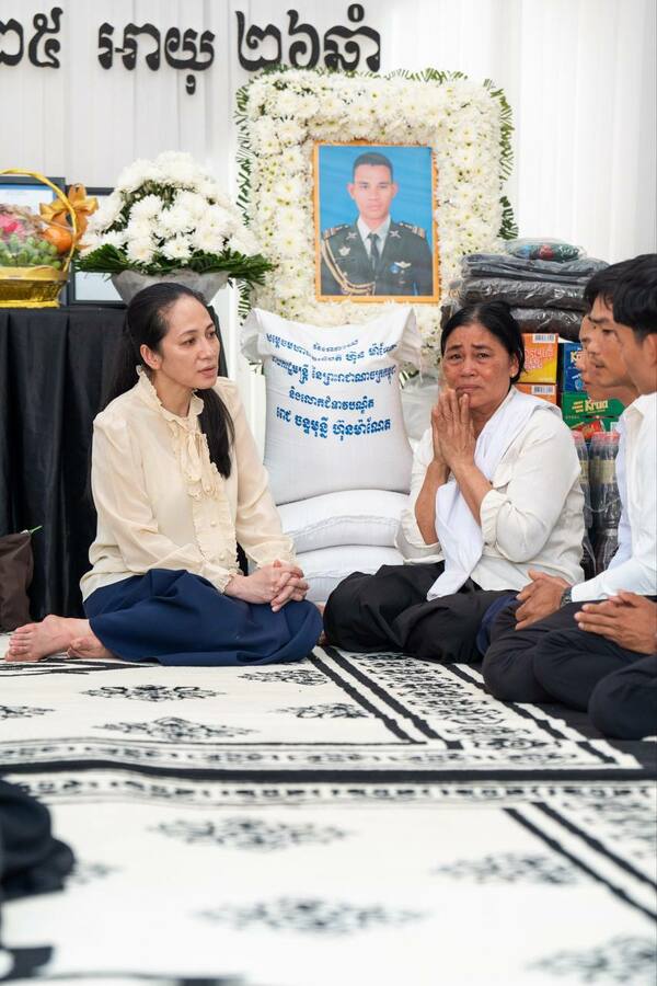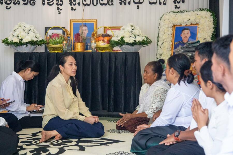 ស្ថិតក្នុងបរិយាកាសដ៏សោកសៅនេះដែរលោកជំទាវបណ្ឌិត បានពាំនាំប្រសាសន៍ចូលរួមរំលែកមរណទុក្ខដ៏ក្រៀមក្រំបំផុត រួមជាមួយប្រសាសន៍សាកសួរសុខទុក្ខពី សម្តេចអគ្គមហាសេនាបតីតេជោ ហ៊ុន សែន និងសម្តេចកិត្តិព្រឹទ្ធបណ្ឌិត ព្រមទាំង សម្តេចធិបតីនាយករដ្ឋមន្ត្រី ជូនដល់ក្រុមគ្រួសារនៃសព។