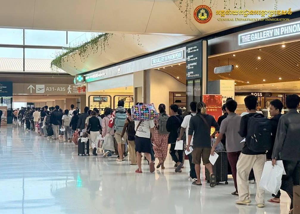 (រាជធានីភ្នំពពេញ)៖ នៅថ្ងៃទី ២៤ ខែកុម្ភៈ ឆ្នាំ ២០២៦ នេះ តាមការចុះផ្សាយពី អគ្គនាយកដ្ឋានអន្តោប្រវេសន៍ បានឱ្យដឹងថា នៅថ្ងៃទី ២១ ២២ និងថ្ងៃទី ២៣ ខែកុម្ភៈ ឆ្នាំ ២០២៦។ ក្នុងរយៈពេល ៣ថ្ងៃ អគ្គនាយកដ្ឋានអន្តោប្រវេសន៍ បានធ្វើការបណ្ដេញជនជាតិបរទេសចំនួនជាង ១០៩០នាក់ ចេញពីកម្ពុជាតាមច្រកទ្វារអាកាសអន្តរជាតិតេជោ ពាក់ព័ន្ធករណីលួចឆ្លងដែន ស្នាក់នៅគ្មានលិខិតឆ្លងដែន និងធ្វើការងារខុសច្បាប់។