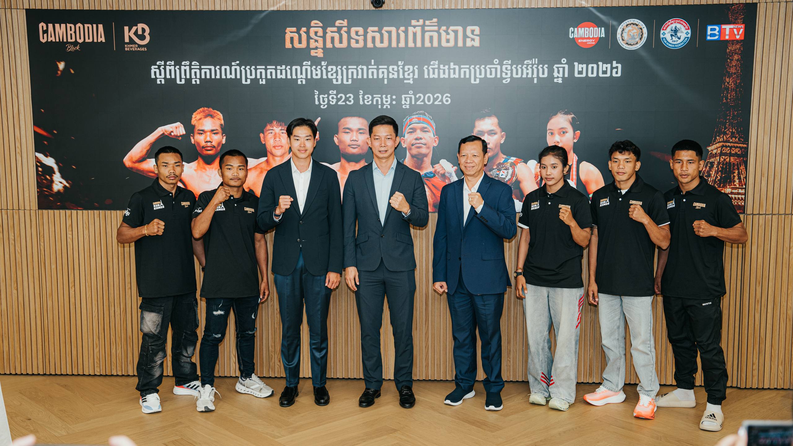 (ភ្នំពេញ)៖ មោទនភាពក្នុងការបង្ហាញអត្តសញ្ញាណខ្មែរលើឆាកអន្តរជាតិ! CAMBODIA BLACK និងភេសជ្ជៈប៉ូវកម្លាំងកម្ពុជា របស់ក្រុមហ៊ុន ខ្មែរ ប៊ែវើរីជីស បានចូលរួមឧបត្ថម្ភទាំងស្រុងក្នុងដំណើរទៅប្រកួតក្នុង «ព្រឹត្តិការណ៍ប្រកួតដណ្តើមខ្សែក្រវ៉ាត់គុនខ្មែរ ជើងឯកប្រចាំទ្វីបអឺរ៉ុប ឆ្នាំ ២០២៦» ដោយនាំយកកីឡាករ-កីឡាការិនីជួរមុខទាំង ៦ រូបទៅប្រកួតនៅទីក្រុងប៉ារីស ប្រទេសបារាំង។