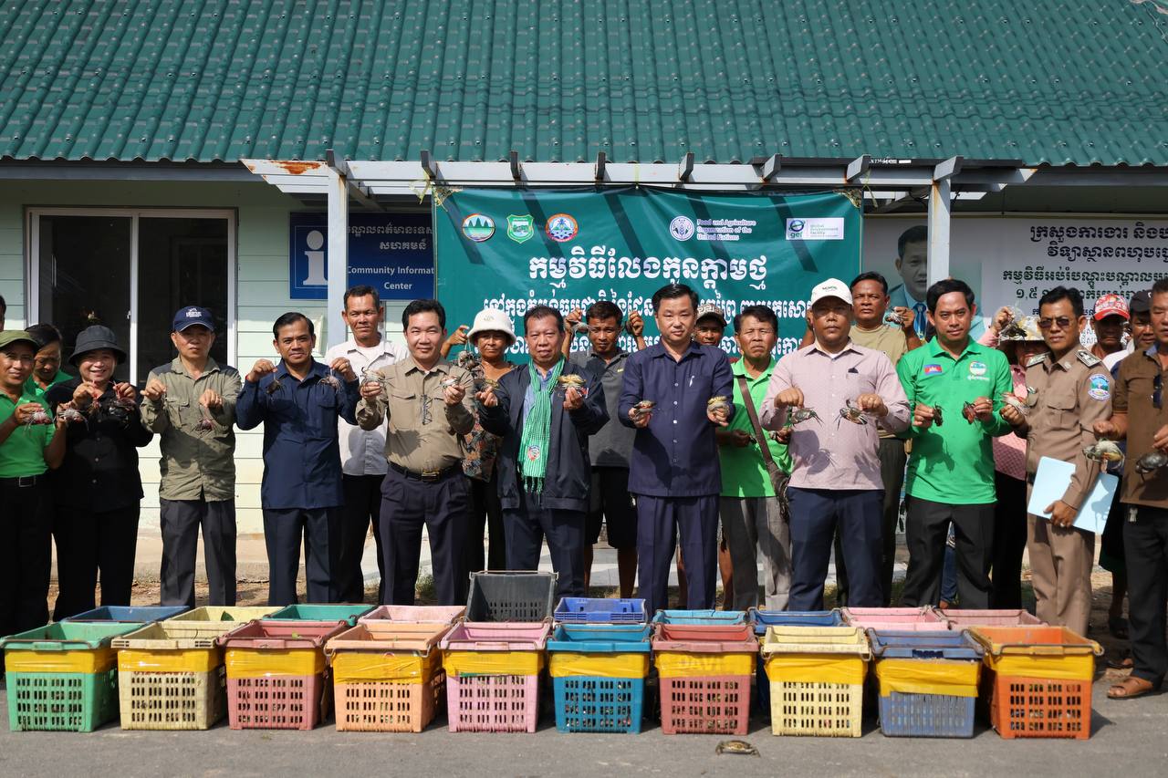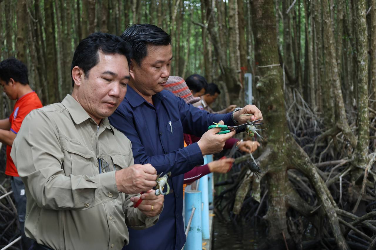 (ខេត្តកោះកុង)៖ តាមការចុះផ្សាយពី អគ្គនាយកដ្ឋានវិទ្យុជាតិកម្ពុជា បានបញ្ជាក់ថា ក្រសួងបរិស្ថាន តាមរយៈគម្រោងបន្ស៊ាំ និងភាពធន់នឹងអាកាសធាតុនៃសហគមន៍ពឹងអាស្រ័យលើធនធានជលផលនៅតំបន់ឆ្នេរនៃប្រទេសកម្ពុជា (CamAdapt) នៅថ្ងៃទី ២៦ ខែកុម្ភៈ ឆ្នាំ ២០២៦ បានលែងកូនក្តាមថ្ម ៤០០គីឡូក្រាម ស្មើនឹងចំនួនកូនក្តាមប្រមាណ៨០០០ក្បាល ចូលទៅក្នុងធម្មជាតិ ក្នុងសហគមន៍តំបន់ការពារធម្មជាតិ ពាមក្រសោប និងសហគមន៍តំបន់ការពារធម្មជាតិបឹងកាឆាង ក្នុងស្រុកមណ្ឌលសីមា ខេត្តកោះកុង ដើម្បីស្តារធនធានជលផល ពង្រឹងប្រព័ន្ធអេកូឡូស៊ីតំបន់ឆ្នេរកម្ពុជា និងលើកកម្ពស់ជីវភាពសហគមន៍តំបន់ការពារធម្មជាតិ។