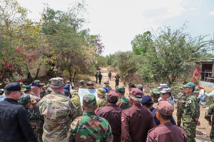 យោងតាមការចុះផ្សាយរបស់ ក្រសួងព័ត៌មាន នៅរសៀលនៅថ្ងៃទី ៤ ខែមីនា ឆ្នាំ ២០២៦ បានឱ្យដឹងថា ប្រតិភូអនុព័ន្ធយោធាបរទេស ចំនួន ១២ប្រទេស ចុះទៅពិនិត្យទីតាំងជាក់ស្តែងនៅភូមិព្រៃចាន់ ឃុំអូរបីជាន់ ស្រុកអូរជ្រៅ ខេត្តបន្ទាយមានជ័យ ដែលជាទីតាំងទទួលរងការវាយប្រហារ រាយបន្លាលួស និងដាក់ពង្រាយទូកុងតឺន័រកាន់កាប់ដោយខុសច្បាប់របស់យោធាថៃ។