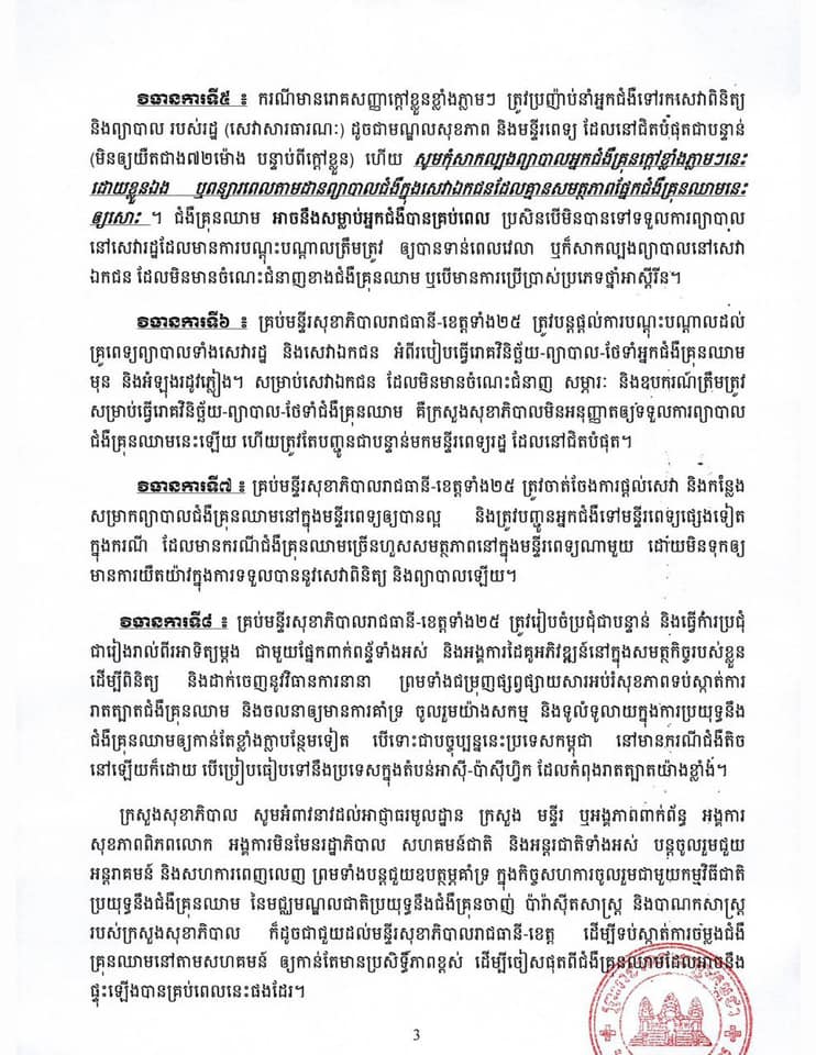 ដើម្បីការពារសុខភាពជៀសផុតពីការឆ្លងជំងឺគ្រុនឈាម ពិសេសដើម្បីបង្ការការឈឺ និងស្លាប់ ដោយសារជំងឺនេះ ក្រសួងសុខាភិបាល បានអំពាវនាវដល់ប្រជាពលរដ្ឋគ្រប់រូប និងអាជ្ញាធរមូលដ្ឋាន ត្រូវចូលរួមអនុវត្តន៍នូវវិធានការដូចនៅក្នុងសេចក្តីជូនព័ត៌មានខាងក្រោម៖
