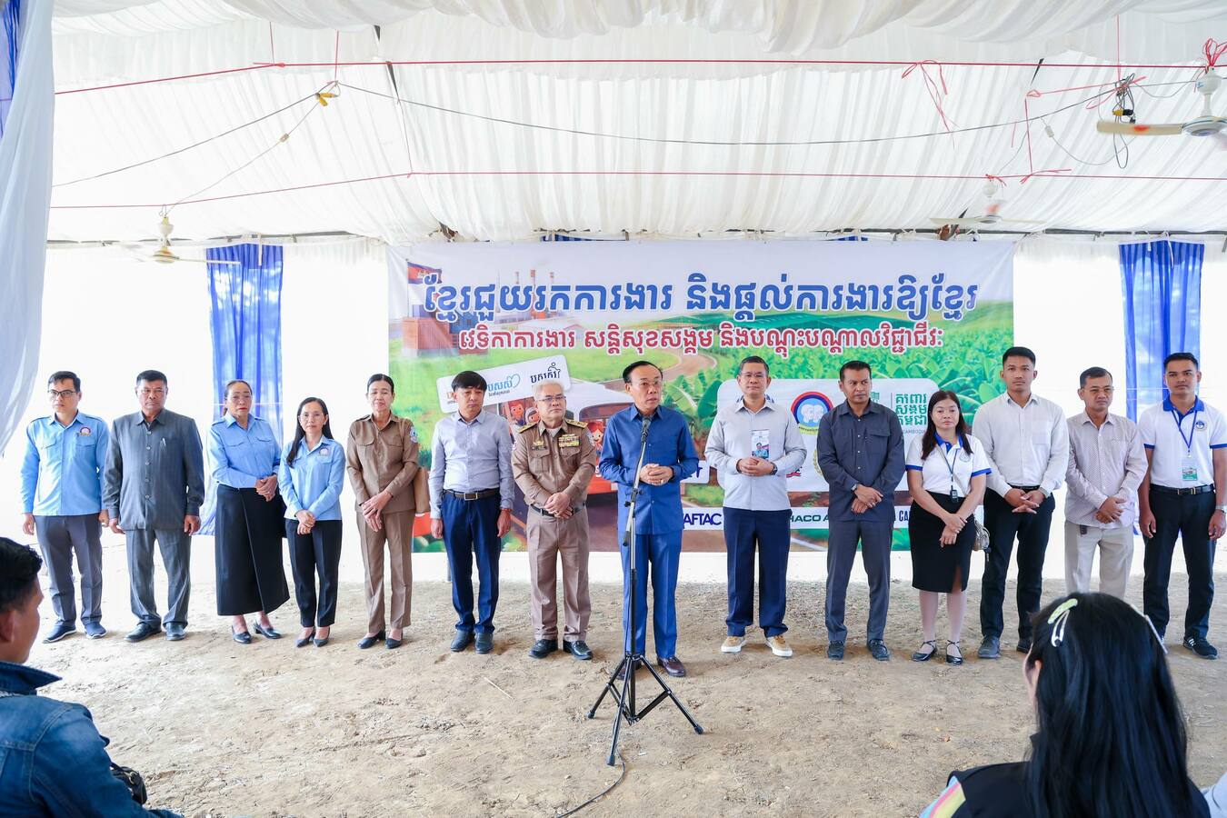 ក្នុងឱកាសនោះ ឯកឧត្តម ឡៅ ហ៊ីម រដ្ឋលេខាធិការ និងជាតំណាងដ៏ខ្ពង់ខ្ពស់របស់ឯកឧត្តម ហេង សួរ រដ្ឋមន្ត្រីក្រសួងការងារ និងបណ្ដុះបណ្ដាលវិជ្ជាជីវៈ បានគូសបញ្ជាក់ពីការយកចិត្តទុកដាក់របស់រាជរដ្ឋាភិបាល តាមរយៈការនាំយកនូវឱកាសការងារចំនួន ២ ៧៥០ កន្លែង ដែលផ្តល់ដោយតំណាងរោងចក្រ សមាគម និងទីភ្នាក់ងារបញ្ជូនពលករចំនួន ០៧ ក្នុងចំណោមឱកាសការងារសរុបជាង ៨ ម៉ឺនកន្លែងនៅទូទាំងប្រទេស។ ឯកឧត្តមបញ្ជាក់ថា ការងារក្នុងស្រុកគឺជាជម្រើសដ៏ល្អ ព្រមជាមួយនូវមានលក្ខខណ្ឌការងារល្អ និងប្រាក់ឈ្នួលសមរម្យ។ អ្វីដែលកាន់តែពិសេសនោះ គឺការទទួលបានការគាំពារពីបេឡាជាតិរបបសន្តិសុខសង្គម (ប.ស.ស.) ដែលផ្តល់នូវភាពកក់ក្តៅដល់កម្មករនិយោជិត និងការជួយសម្រាលបន្ទុកជីវភាពតាមរយៈបណ្ណក្រីក្រសម្រាប់បងប្អូនដែលមានតម្រូវការចាំបាច់។