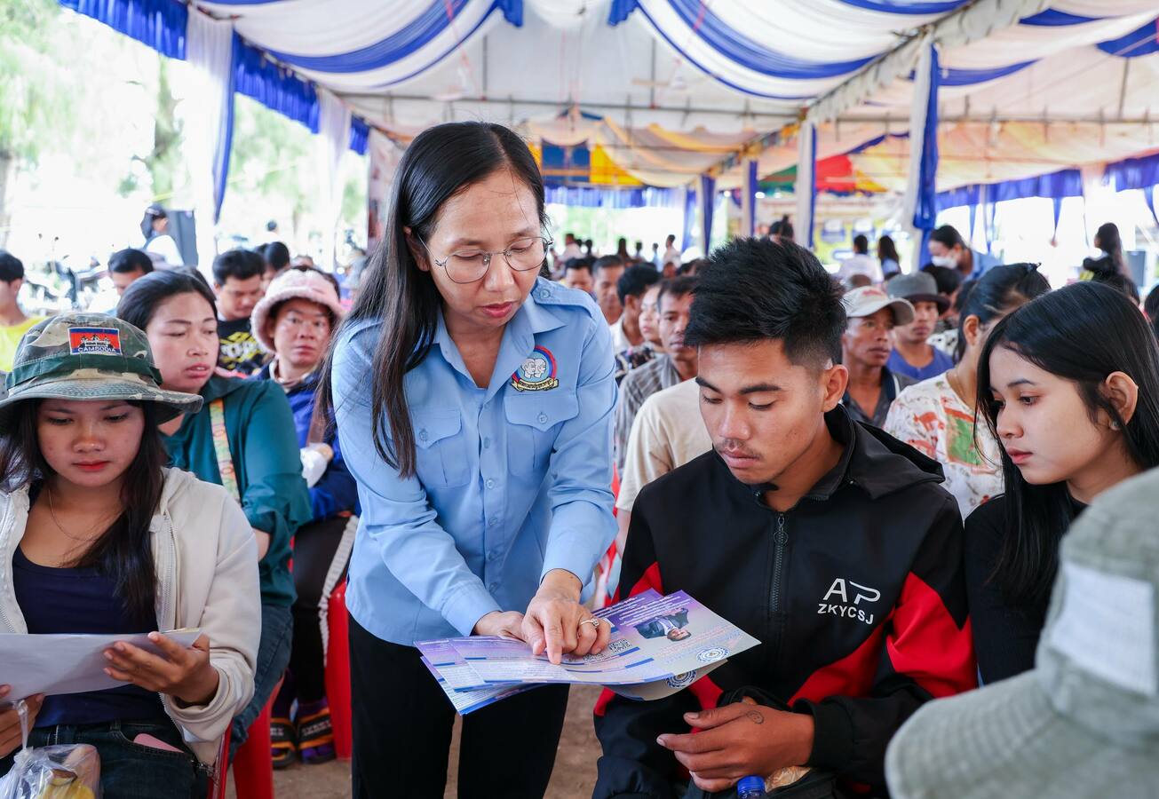 ជាក់ស្តែង នាព្រឹកថ្ងៃអាទិត្យ ទី១៥ ខែមីនា ឆ្នាំ២០២៦ នេះ វេទិកាការងារ សន្តិសុខសង្គម និងការបណ្ដុះបណ្ដាលវិជ្ជាជីវៈ បានបន្តការងាររបស់ខ្លួនយ៉ាងសកម្មនៅក្នុងបរិវេណសាលាបឋមសិក្សាភូមិថ្មី និងអនុវិទ្យាល័យបន្សាយត្រែង ស្រុកថ្មគោល ខេត្តបាត់ដំបង ដោយមានអតីតពលករ និងប្រជាពលរដ្ឋចូលរួមប្រមាណ ៨០០ នាក់ មកទទួលព័ត៌មានឱកាសការងារថ្មីៗ អត្ថប្រយោជន៍នៃរបបសន្តិសុខសង្គម និងកម្មវិធីបណ្ដុះបណ្ដាលជំនាញបច្ចេកទេស។