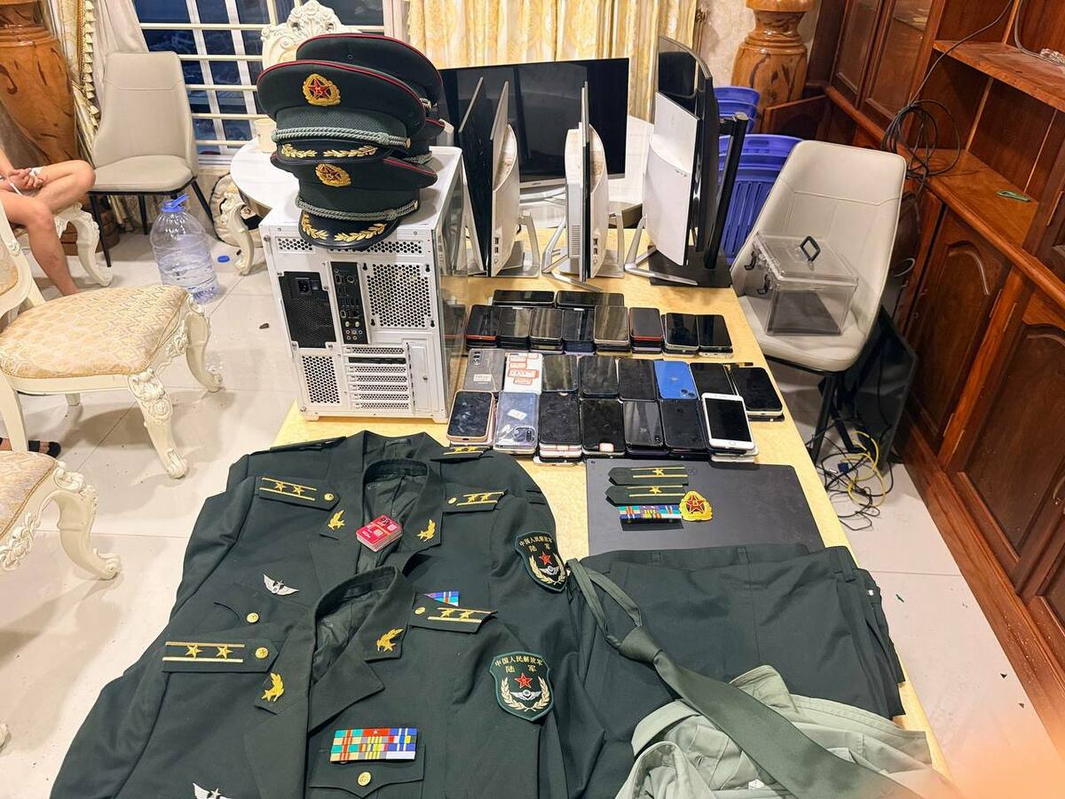 ភ្នំពេញ៖ កម្លាំងចម្រុះ នៃគណៈបញ្ជាការឯកភាពរដ្ឋបាលរាជធានីភ្នំពេញ បានបន្តប្រតិបត្តិការចុះ បង្ក្រាប ការឆបោកតាមប្រព័ន្ធបច្ចេកវិទ្យា online Scams មួយកន្លែង ស្ថិតក្នុងបុរីប៉េងហួតបឹងស្នោ ផ្ទះលេខ១៤ ផ្លូវ M០៥ ភូមិបឹងឈូក សង្កាត់និរោធ ខណ្ឌច្បារអំពៅ ឃាត់ជនជាតិចិន១៩នាក់ និងដកហូតសម្ភារៈភស្តុតាងរួមាន: ទូរសព្ទដៃ ១២៣គ្រឿង, កុំព្យូទ័រ All in One ០៨ គ្រឿង, ម៉ូនីទ័រ ០២ គ្រឿង , កុំព្យូទ័រយួរដៃ ០១គ្រឿង, CPU ០១គ្រឿង មួក និងឯកសណ្ឋានក្លែងបន្លំជាសមត្ថកិច្ចចិន ចំនួន ០៣ កំប្លេ ។