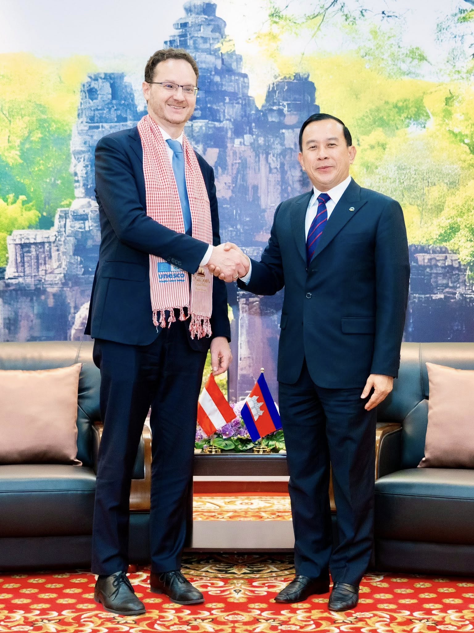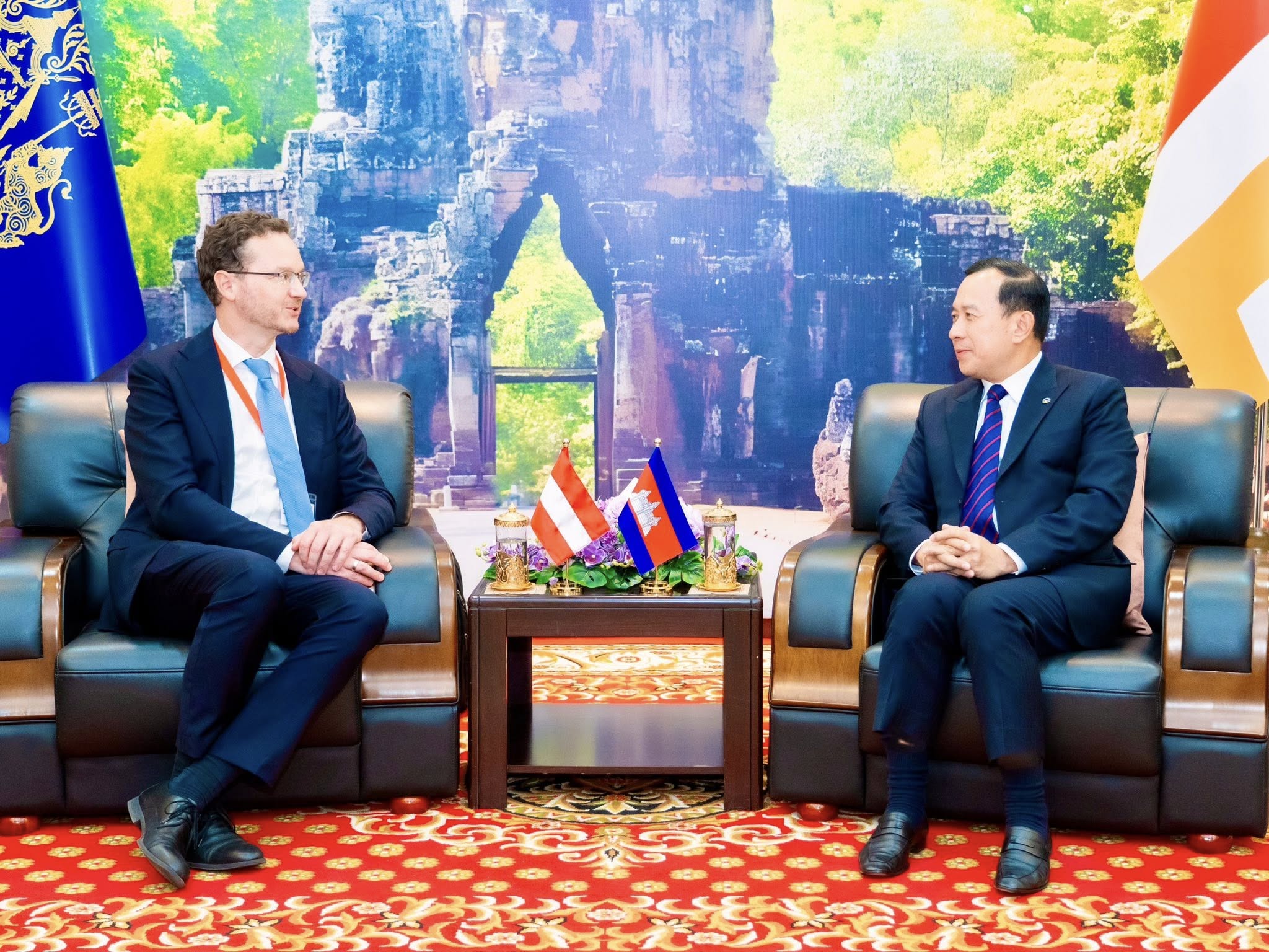 ក្នុងជំនួបប្រកបដោយផ្លែផ្កា គូភាគី បានបញ្ជាក់ពីការប្តេជ្ញាចិត្តក្នុងការបន្តពង្រឹង និងពង្រីកកិច្ចសហប្រតិបត្តិការក្នុងវិស័យទេសចរណ៍ឱ្យកាន់តែល្អ ដើម្បីអភិវឌ្ឍវិស័យទេសចរណ៍ និងឧស្សាហកម្មបដិសណ្ឋារកិច្ចឱ្យកាន់តែរីកចម្រើន ព្រមទាំងការពិនិត្យលទ្ធភាពជម្រុញឱ្យមានជើងហោះហើរត្រង់ពីទីក្រុង Vienna មកកាន់រាជធានីភ្នំពេញ ឬខេត្តសៀមរាប សូមបញ្ជាក់ថា កម្ពុជា និងអូទ្រីស មានទំនាក់ទំនងការទូតដ៏ល្អតាំងពីឆ្នាំ ១៩៥៦ ហើយគិតត្រឹមឆ្នាំ ២០២៦ នេះ គឺមានរយៈពេលប្រមាណ ៧០ឆ្នាំមកហើយ ដែលមានកិច្ចសហប្រតិបត្តិការលើវិស័យនានា រួមទាំងវិស័យវិនិយោគ ទេសចរណ៍ផងដែរ។ ក្នុងដើមឆ្នាំ ២០២៦ នេះ មានភ្ញៀវទេសចរអូទ្រីសច្រើនជាង ២.០០០នាក់ បានធ្វើដំណើរទេសចរណ៍មកលេងគ្រប់គោលដៅទេសចរណ៍កម្ពុជាទាំងអស់ប្រកបដោយសុខសុវត្តិភាព និងសោមន្សរីករាយ៕