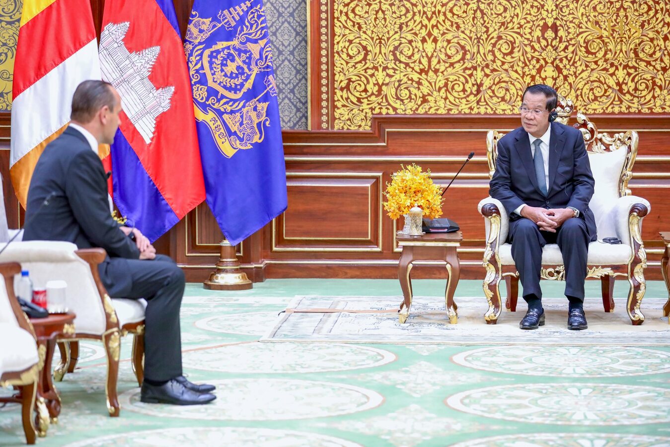 នៅវិមានសាមគ្គីភាព នៃព្រឹទ្ធសភា នាព្រឹកថ្ងៃព្រហស្បតិ៍ ១កើត ខែចេត្រ ឆ្នាំម្សាញ់ សប្ដស័ក ពុទ្ធសករាជ ២៥៦៩ ត្រូវនឹងថ្ងៃទី១៩ ខែមីនា ឆ្នាំ២០២៦ សម្តេចអគ្គមហាសេនាបតីតេជោ ហ៊ុន សែន ប្រមុខរដ្ឋស្តីទីនៃព្រះរាជាណាចក្រកម្ពុជា បានអនុញ្ញាតឱ្យ ឯកឧត្តម អេឡិចសិនដឺ មីខូវស៊ិន (Alexander Micovčin) ឯកអគ្គរដ្ឋទូតថ្មីនៃសាធារណរដ្ឋស្លូវ៉ាគី ប្រចាំនៅកម្ពុជា ចូលជួបនិងប្រគល់សារតាំង។