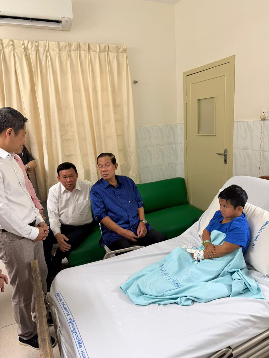 សម្ដេចតេជោ បានលើកឡើងថា “ព្រឹកនេះឆ្លៀតពេលទៅសួរសុខទុក្ខ នាយក្រិនដែលកំពុងមានជម្ងឺនៅមន្ទីរពេទ្យកាលម៉ែត។ ខ្លួនឈឺ ឪពុកមរណភាពដែលមិនហ៊ានឲ្យនាយក្រិនដឹងគឹជារឿងវាយប្រហារធ្ងន់ធ្ងរសម្រាប់ជិវិតនាយក្រិន។