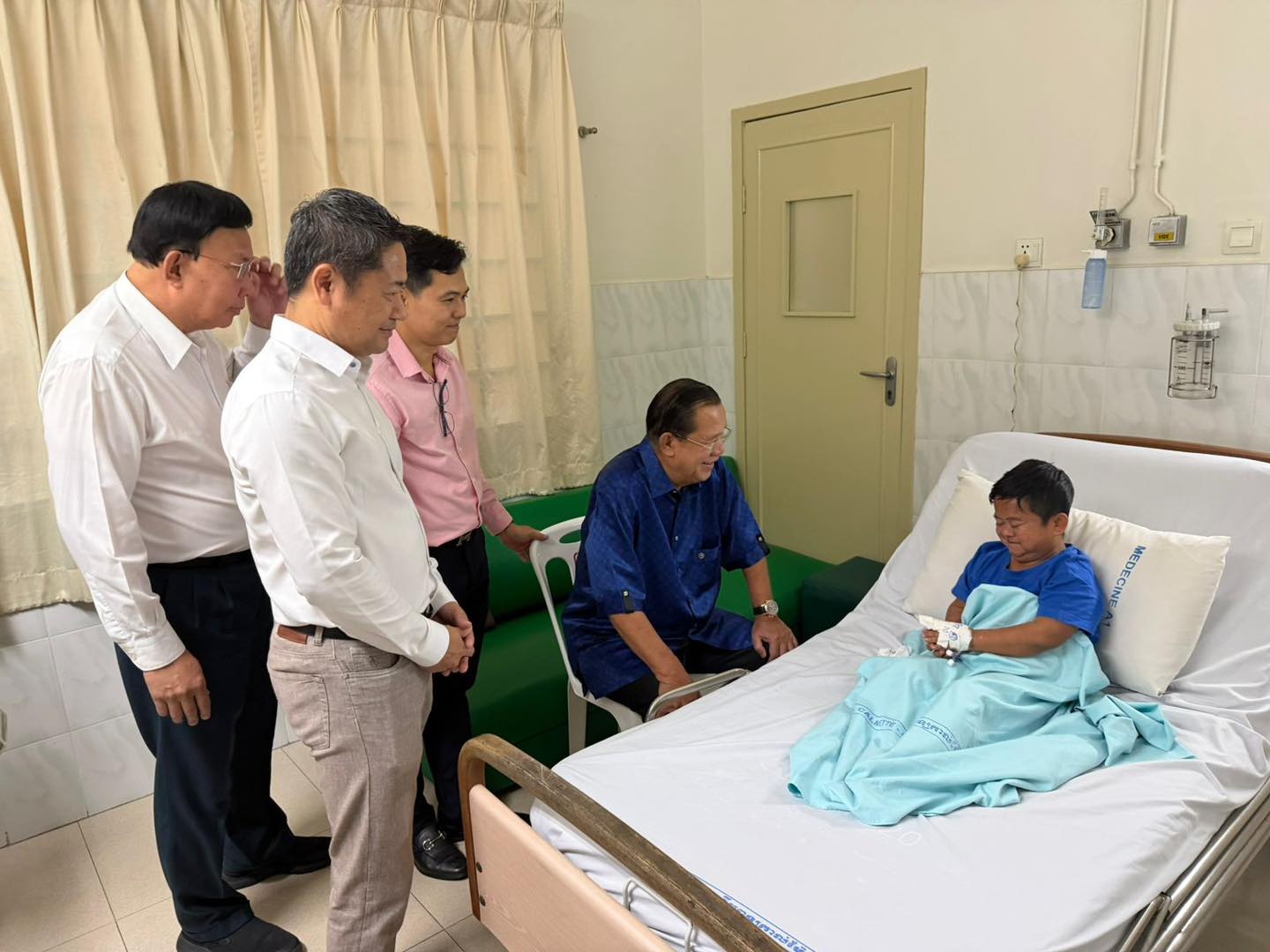 សម្ដេចតេជោ ហ៊ុន សែន អញ្ជើញសួរសុខទុក្ខតារាកំប្លែងនាយក្រិន ដែលកំពុងសម្រាកព្យាបាលជំងឺ និងណែនាំអោយរៀបចំដល់កូនៗទាំងបីរបស់នាយក្រិនអោយបានចូលរៀនវិញ