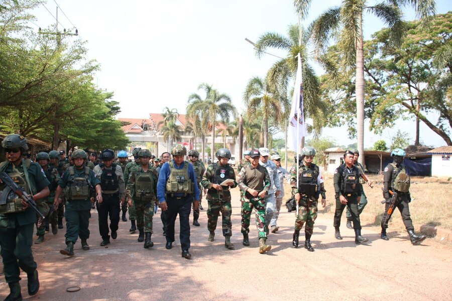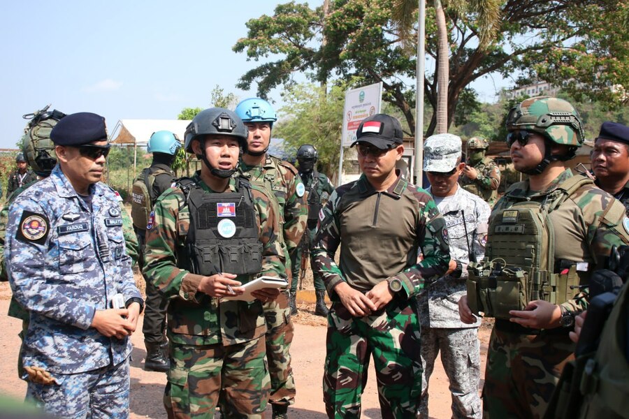 ក្រុមអ្នកសង្កេតការណ៍អាស៊ាន (AOT) ចុះសង្កេតការណ៍ ផ្ទៀងផ្ទាត់ និងរាយការណ៍អំពីស្ថានភាពព្រំដែននៅតំបន់ច្រកអូរស្មាច់ ក្រុងសំរោង ខេត្តឧត្តរមានជ័យ