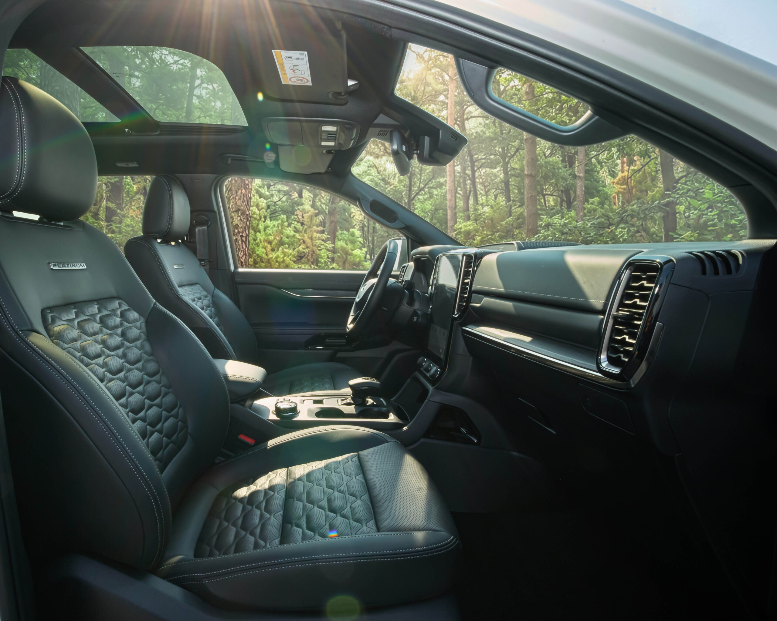 ផ្នែកខាងក្នុងមានការតុបតែងដោយពូកស្បែកគុណភាពខ្ពស់ រំលេចដោយថ្នេរពណ៌ទឹកប្រាក់ ក្បាច់រចនាបែបប្រណិត និងមានស្លាក “Platinum” នៅលើកៅអី ដែលបង្ហាញពីអត្តសញ្ញាណដ៏ល្អឥតខ្ចោះ និងឧត្តមភាពនៃម៉ូឌែលកំពូលនេះ ហើយក៏មានបំពាក់មកនូវមុខងារកៅអីក្តៅ/ត្រជាក់ និងមុខងារកំណត់អង់ចងចាំកៅអី (Memory Seat) ចំនួន 3 Sets សម្រាប់កៅអីខាងមុខដែលងាយស្រួលក្នុងការប្តូរសមាជិកបើកបរក្នុងគ្រួសារ ហើយកៅអីជួរទី2 ក៏មានក្បាច់រថយន្តលក្ខណៈ Premium នឹងមានបំពាក់មកជាមួយមុខងារកៅអីកម្តៅផងដែរ។ ជាមួយនឹងការកែលម្អទាំងនេះ Ford Everest កាន់តែបញ្ជាក់ពីសមត្ថភាព ផាសុកភាព និងបច្ចេកវិទ្យាទំនើប ដើម្បីឆ្លើយតបនឹងតម្រូវការរបស់អតិថិជនគ្រប់កម្រិត ខណៈដែលលក្ខណៈពិសេសបន្ថែមផ្សេងៗ នឹងត្រូវបានប្រកាសជាផ្លូវការនាពេលឆាប់ៗខាងមុខ។