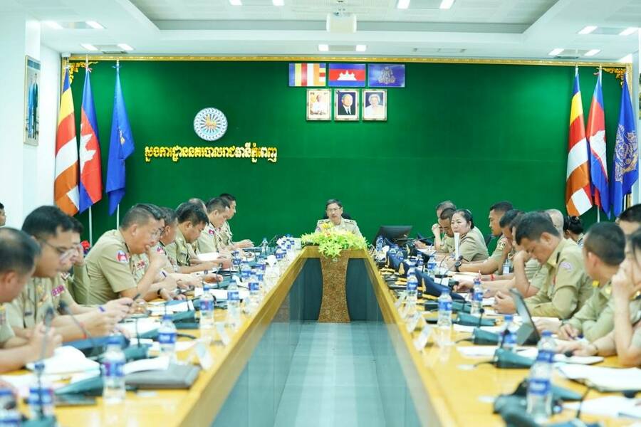 ដោយទទួលបានការអនុញ្ញាតពី ឯកឧត្តម នាយឧត្តមសេនីយ៍ ស ថេត អគ្គស្នងការនគរបាលជាតិ នារសៀលថ្ងៃទី ៣១ ខែមីនា ឆ្នាំ ២០២៦ ឯកឧត្តម ឧត្តមសេនីយ៍ឯក ជួន ណារិន្ទ អគ្គស្នងការរង និងជាស្នងការនគរបាលរាជធានីភ្នំពេញ បានអញ្ជើញដឹកនាំកិច្ចប្រជុំបូកសរុបសភាពការណ៍លទ្ធផលនៃកិច្ចប្រតិបត្តិការការពារសន្តិសុខ រក្សាសណ្តាប់ធ្នាប់ សុវត្ថិភាពសង្គម ប្រចាំត្រីមាសទី១ និងលើកទិសដៅការងារបន្តសម្រាប់ត្រីមាសទី២ ឆ្នាំ២០២៦ និងផ្សព្វផ្សាយផែនការការពារ សន្តិសុខ សណ្តាប់ធ្នាប់ និងសុវត្ថិភាពសង្គម ក្នុងឱកាសប្រារព្ធពិធីបុណ្យចូលឆ្នាំថ្មី និងព្រឹត្តិការណ៍ «នគរសង្រ្កាន្ត» ក្នុងរាជធានីភ្នំពេញ។ កិច្ចប្រជុំនេះដែរ មានការចូលរួមពីលោក-លោកស្រីស្នងការរង លោកអនុប្រធានផែនការងារ លោក-លោកស្រីនាយការិយាល័យជំនាញទាំង៣៣ លោកអធិការនគរបាលខណ្ឌទាំង១៤ និងមន្រ្តីពាក់ព័ន្ធមួយចំនួនទៀតផងដែរ។