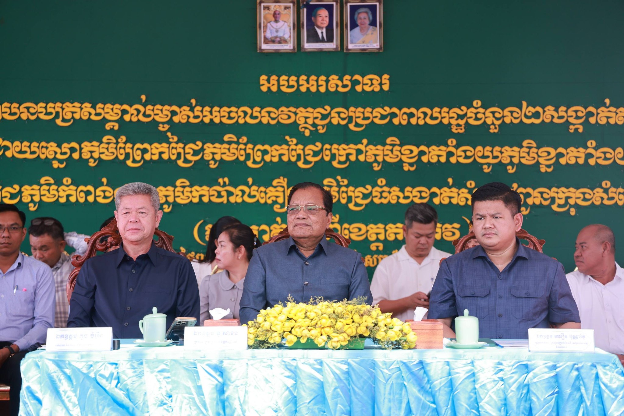 នាឱកាសនោះ ឯកឧត្តម អភិបាលខេត្ត អំពាវនាវដល់ប្រជាពលរដ្ឋ ជាម្ចាស់កម្មសិទ្ធដីធ្លី ស្ថិតក្នុងភូមិចំនួន ៩ នៃសង្កាត់ព្រែកជ្រៃ និងសង្កាត់សំពៅពូន ក្រុងសំពៅពូន ខេត្តកណ្ដាល សូមអញ្ជើញមកយកបានកម្មសិទ្ធិដីធ្លី(ប្លង់រឹង)របស់បងប្អូន នៅការិយាល័យច្រកចេញចូលតែមួយ សាលាក្រុងសំពៅពូន។