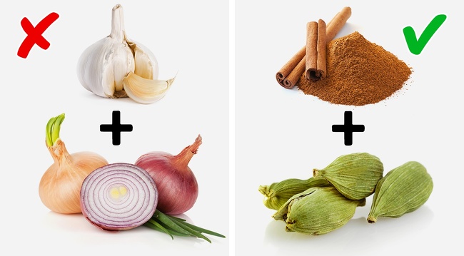 ៧. ក្រវាញ និងឈើអែម ជាមួយ ខ្ទឹមស និងខ្ទឹមបារាំង ៖ ក្រវាញ និងឈើអែម គឺមិនត្រឹមតែបង្កើនរសជាតិអាហារប៉ុណ្ណោះទេ ប៉ុន្តែក៏ជួយផ្ដល់ឲ្យអ្នកនូវក្លិនខ្លួនស្រស់ស្រាយបានយូរផងដែរ។ ផ្ទុយទៅវិញ ខ្ទឹមស និងខ្ទឹមបារាំងមានផ្ទុកនូវសមាសធាតុស្ពាន់ធ័រសរីរាង្គដែលត្រូវបានរំលាយ និងត្រូវបានបំបាត់ជាចម្បងតាមរយៈរន្ធញើសនៃរាងកាយដែលនេះជាហេតុបណ្តាលឲ្យក្លិនខ្លួនមិនល្អភាយចេញពីរាងកាយ។