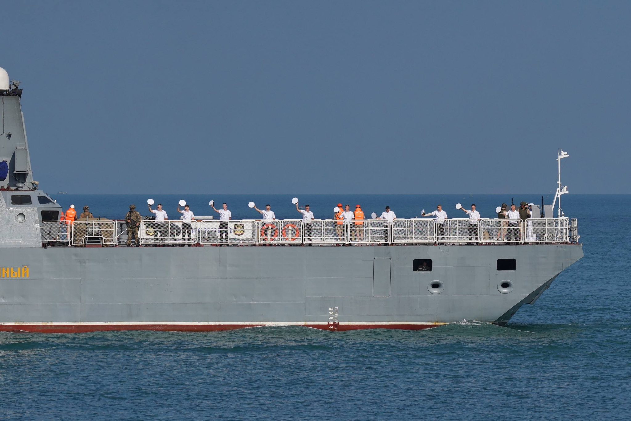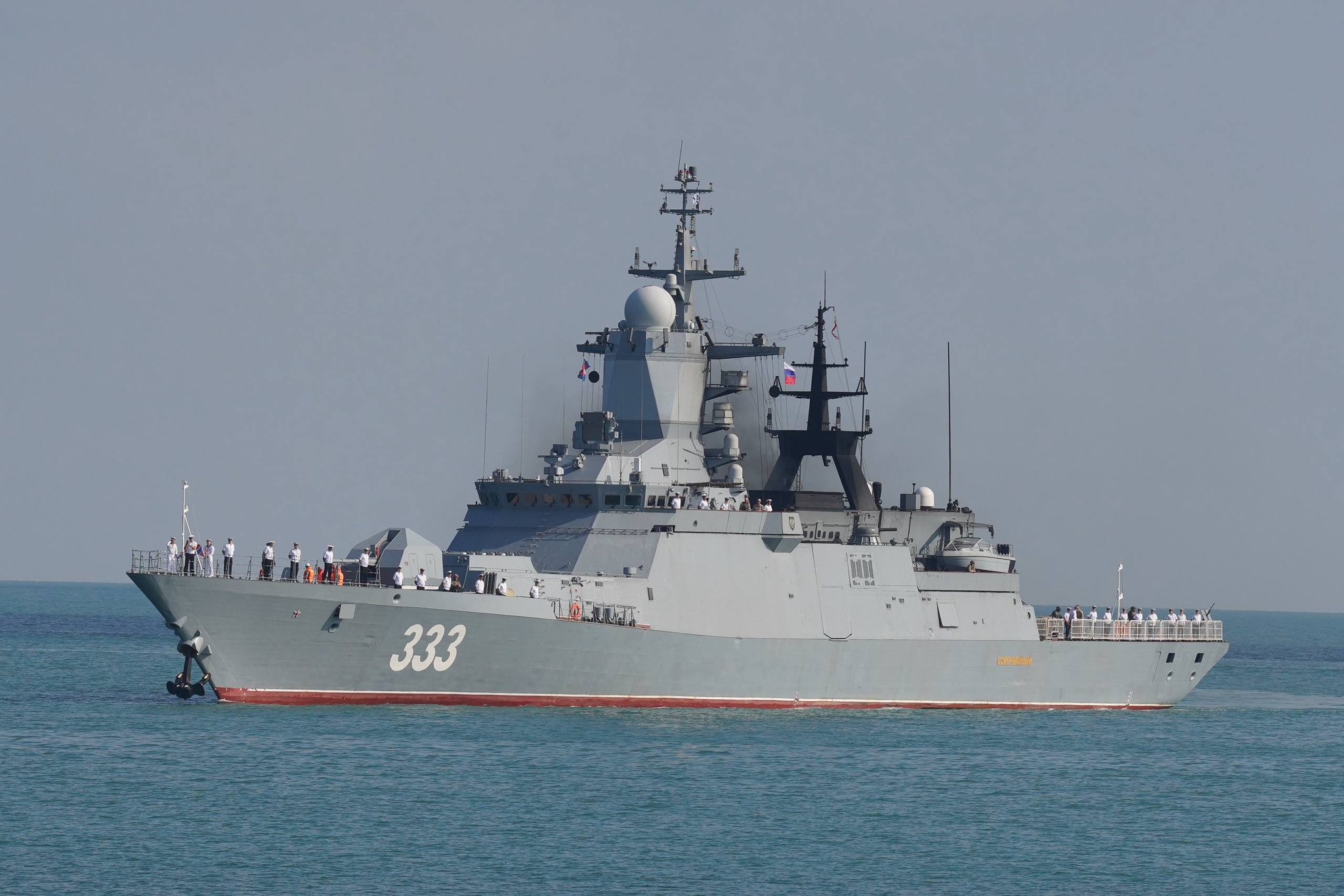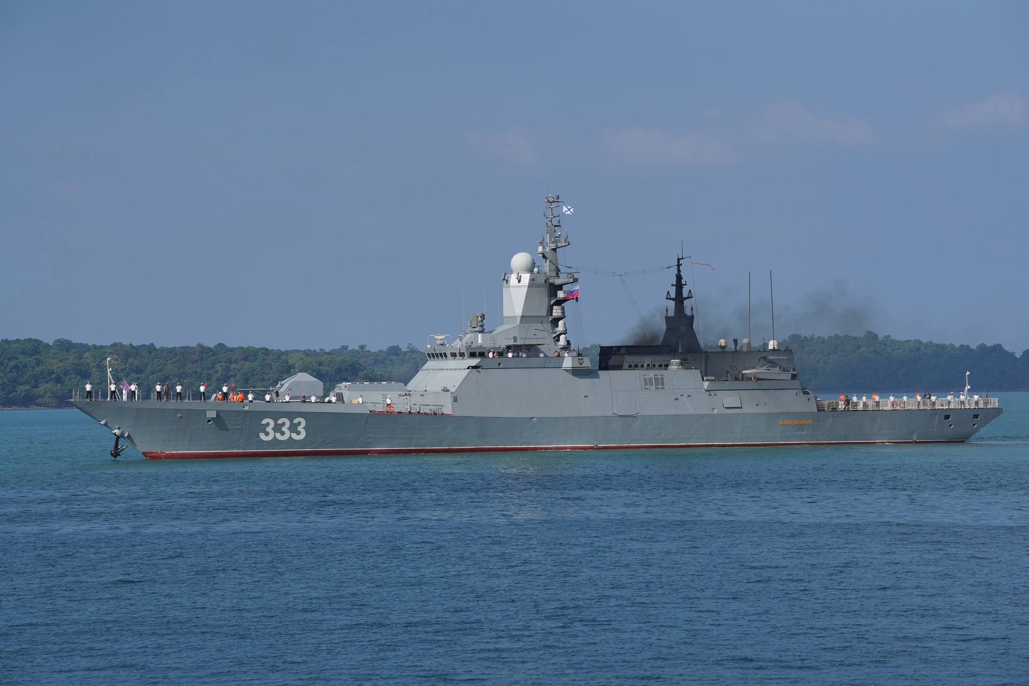 ចំពោះ នាវាចម្បាំងរុស្ស៊ីចំនួន ២គ្រឿងនេះដែរ មានឈ្មោះ Sovershenny លេខ៣៣៣ និងឈ្មោះ Rezky លេខ៣៤៣ មកពីកងនាវាប្រចាំតំបន់ប៉ាស៊ីហ្វិកនៃកងទ័ពជើងទឹកសហព័ន្ធរុស្ស៊ី ចូលចតនៅកំពង់ផែខេត្តព្រះសីហនុ នាព្រឹកថ្ងៃទី៦ ខែមេសា ឆ្នាំ២០២៦នេះ។ នាវាចម្បាំងទាំងពីរគ្រឿងនេះ ដឹកនាំដោយមេបញ្ជាការ លោកវរនាវីឯក SHMAGIN Artem និងមេបញ្ជាការ លោកវរនាវីឯក KOVALEV Evgenii ហើយមាននាវិកសរុបប្រមាណ ២៦២នាក់ ដែលនឹងសំចតនៅកម្ពុជារហូតដល់ថ្ងៃទី ៨ ខែមេសា ឆ្នាំ ២០២៦។ ការមកដល់របស់នាវាចម្បាំងរុស្ស៊ីទាំងពីរគ្រឿងនេះ ត្រូវបានស្វាគមន៍យ៉ាងកក់ក្តៅពីសំណាក់ឧត្តមនាវីត្រី អ៊ិន សុខេមរា មេបញ្ជាការរងមូលដ្ឋានសមុទ្ររាម ជាមួយកងទ័ពជើងទឹករបស់កម្ពុជាចំនួន៦០នាក់ ដោយមានការចូលរួមពីឯកឧត្តម Anatoly Borovik ឯកអគ្គរដ្ឋទូតរុស្ស៊ីប្រចាំនៅកម្ពុជាផងដែរ។