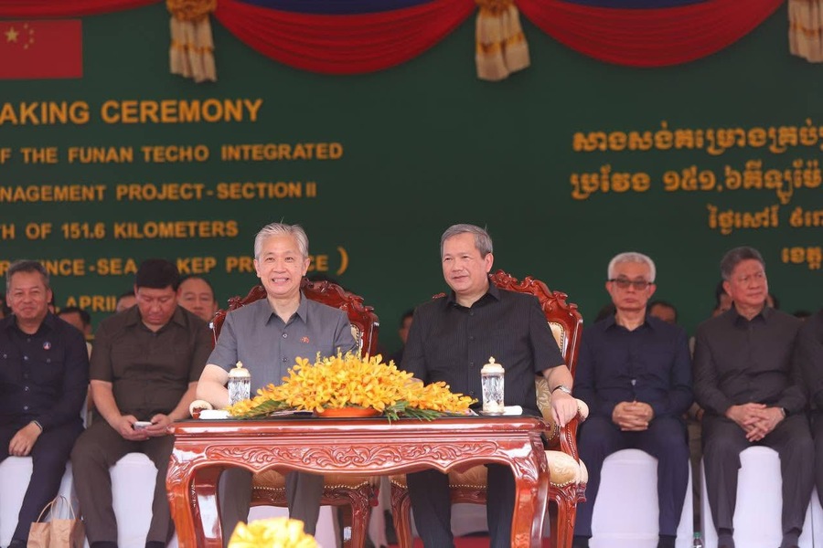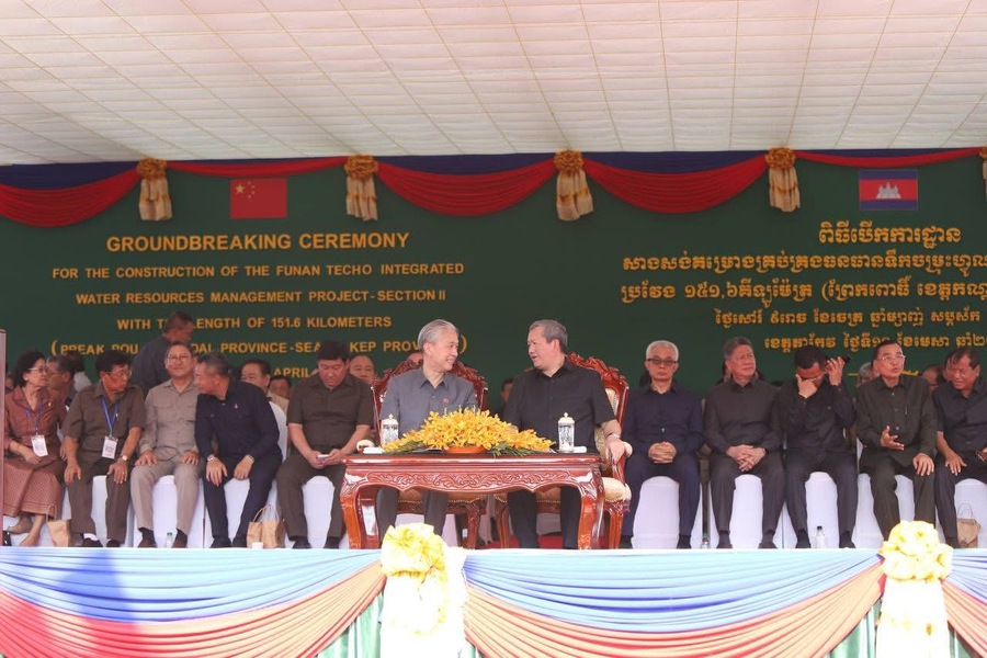 សម្តេចមហាបវរធិបតី ហ៊ុន ម៉ាណែត នាយករដ្ឋមន្ត្រី នៃព្រះរាជាណាចក្រកម្ពុជា អញ្ជើញជាអធិបតីបើកការដ្ឋានសាងសង់គម្រោងគ្រប់គ្រងធនធានទឹកចម្រុះហ្វូណនតេជោ កំណាត់ទី២ ប្រវែង ១៥១,៦គីឡូម៉ែត្រ (ព្រែកពោធិ៍ ខេត្តកណ្តាល – សមុទ្រ ខេត្តកែប) នៅព្រឹកថ្ងៃសៅរ៍ ទី១១ ខែមេសា ឆ្នាំ២០២៦។