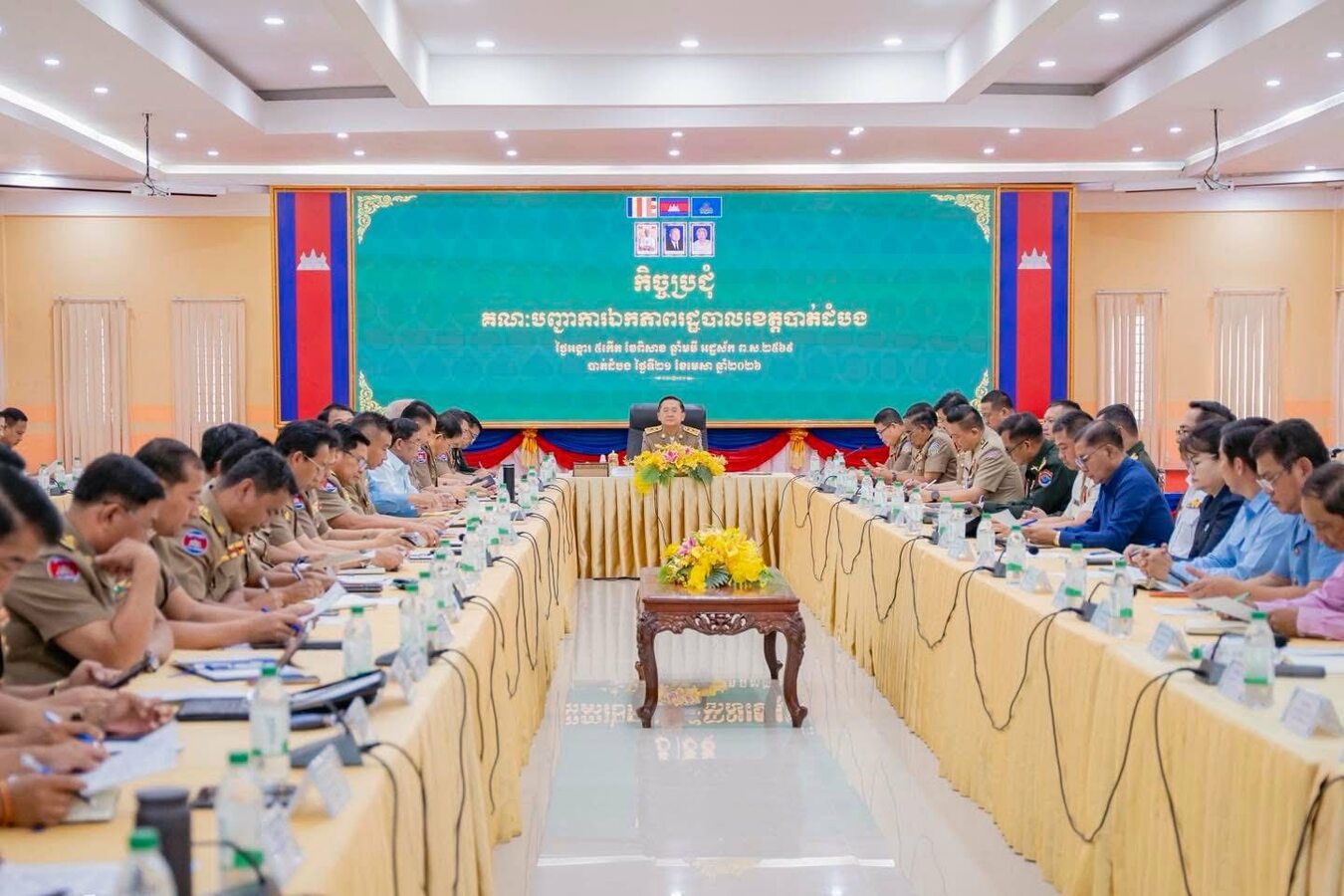 ការក្រើនរំលឹករបស់ ឯកឧត្តម សុខ លូ អភិបាលខេត្តបាត់ដំបង នាឱកាសអញ្ជើញជាអធិបតីដឹកនាំកិច្ចប្រជុំគណៈបញ្ជាការឯកភាពរដ្ឋបាលខេត្តបាត់ដំបង ដែលកិច្ចប្រជុំនេះធ្វើឡើងនៅសាលប្រជុំសាលាខេត្តបាត់ដំបង នៅថ្ងៃទី២១ ខែមេសា ឆ្នាំ២០២៦។