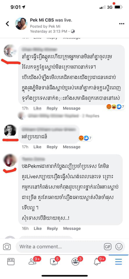 យ៉ាងណាមិញ នាយពែកមី ក៏បានធ្វើការបកស្រាយឆ្លើយតបទៅនឹងការរិះគន់យ៉ាងដូច្នេះថា៖ “បងប្អូនអ្នករិះគន់អេីយ គ្រាន់តែខ្ញុំនិងនាយគ្រឿនទៅរៀបឥដ្ឋម្សិលមុិញ មានអ្នករិះគន់ថា អត់ប្រយោជន៏ គេកំពុងកាន់ទុករឿងនៅកំពង់សោម… ខ្ញុំបានផុសកាន់ទុក្ខ ចូលរួមរំលែកទុក្ខជាច្រេីនហេីយតេី ម៉េចមិនមេីល ចាំតែដៀលអត់មេីល ហេីយថាខ្ញំុទៅរៀបឥដ្នហ្នឹងអត់ប្រយោជន៏។ ខ្ញុំសួរថាអត់ប្រយោជន៏យ៉ាងម៉េច ផ្ទះខ្ញុំធ្វេីលក់ ខ្ញំុទៅរៀបនៅផ្ទះខ្ញុំ គំរោងរបស់ខ្ញុំនៅក្រុងកំពង់ចាម ១៦៨ខ្នង ខ្ញុំលក់តែ១០ថ្ងៃអស់ជាង១០០ខ្នង ម៉េចបានថាអត់ប្រយោជន៏ ប្រជាជនទាំងអស់ដែលគាត់កាន់ទុក្ខ តែពួកគាត់ក៏រកសុីធ្វេីការដែរតេី”៕