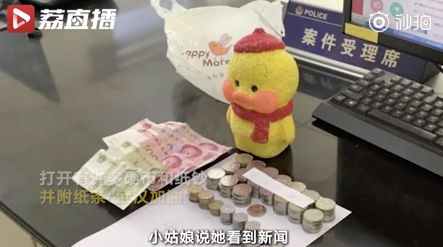 អ្វីដែលគួរឲ្យកត់សម្គាល់បំផុតគឺថា នាងបានដើរទៅក្នុងស្ថានីយ៍ប៉ូលិសក្នុងក្រុង Jiangsu  ខេត្ត Yangzhou តែម្នាក់ឯង និងបានប្រាប់ប៉ូលិសថា នាងសុំបរិច្ចាគលុយរបស់នាងទាំងសម្រាប់បុព្វហេតុប្រយុទ្ធប្រឆាំងនឹងវីរុសកូរ៉ូណា។ បើទោះជាទឹកប្រាក់នោះមិនច្រើនក៏ពិតមែន តែវាជាទឹកចិត្តដ៏ធំធេងនិងមានតម្លៃបំផុតសម្រាប់ក្មេងស្រីម្នាក់ដែល ទើបនឹងមានអាយុ ១០ ឆ្នាំនោះ៕