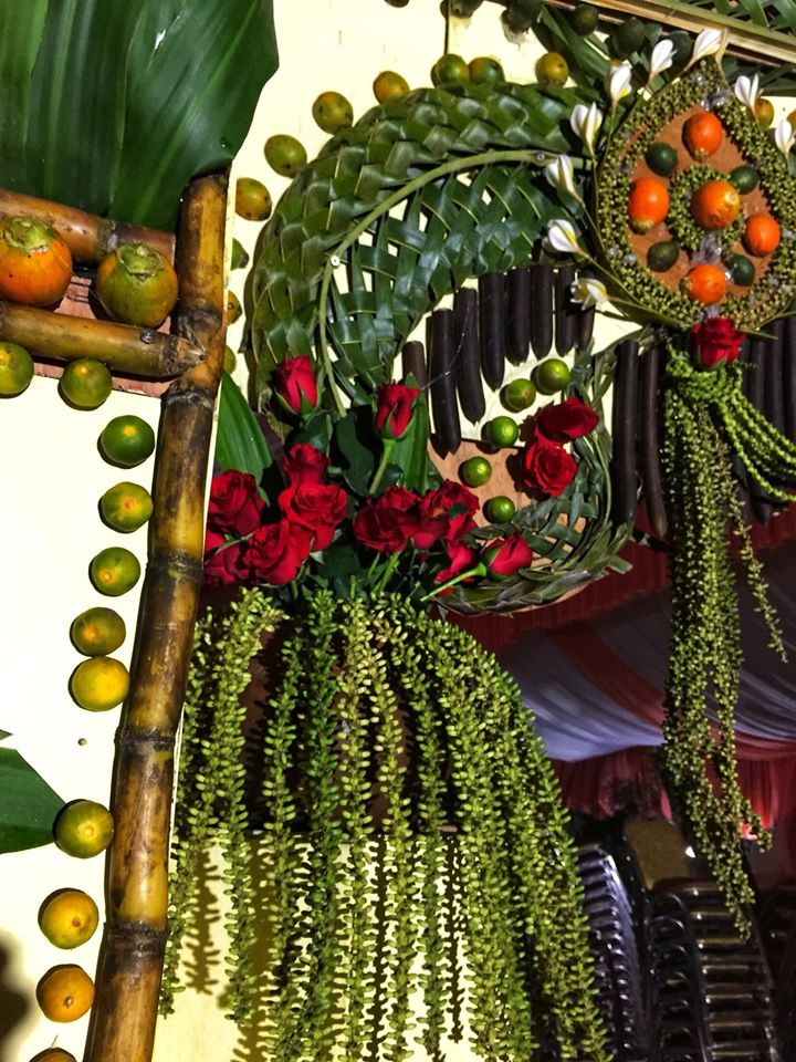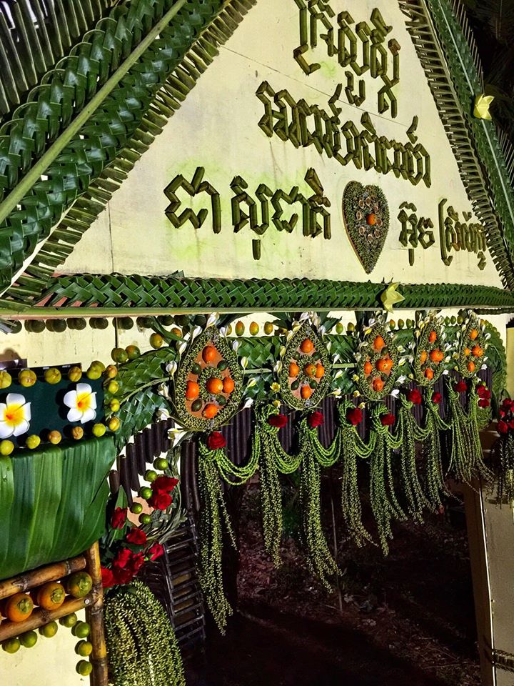 ថ្មីៗនេះមានការចែករំលែកនៅលើបណ្តាញសង្គម បង្ហាញនូវរូបភាពជាច្រើនសន្លឹកនៃរោងខាងមុខនៃពិធីមង្គលការមួយកន្លែងនៅខេត្តកណ្តាល ដែលមានការតុបតែងយកធនធានធម្មជាតិរបស់ខ្មែរ មកច្នៃយ៉ាងល្អប្រណិតនិងទាក់ទាញ ដោយគេឃើញមានយកផ្លែស្លា ធាងដូង ក្រូច ផ្កាចំប៉ី មិនត្រឹមតែប៉ុណ្ណោះមានការយកផ្កាកូឡាបមកច្នៃជាមួយថែមទៀតផង។