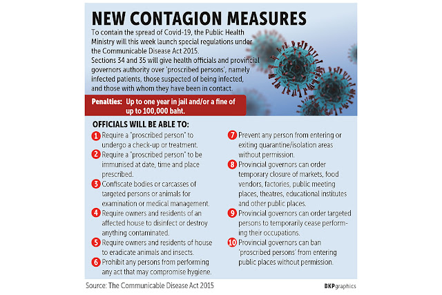 អ្នកណាម្នាក់ដែលមានរោគសញ្ញា បន្ទាប់ពីបានទៅប្រទេសដែលមានហានិភ័យខ្ពស់ តម្រូវឱ្យរាយការណ៍ទៅអាជ្ញាធរ ហើយអ្នកដែលមិនគោរពតាមបទបញ្ជាប្រឈមនឹងការពិន័យ ឬដាក់ពន្ធនាគារ។ សេចក្តីប្រកាសដែលចុះហត្ថលេខាដោយរដ្ឋមន្រ្តីសុខាភិបាលសាធារណៈ Anutin Charnvirakul នឹងចូលជាធរមានមួយថ្ងៃបន្ទាប់ពីវាត្រូវបានផ្សព្វផ្សាយនៅក្នុង Royal Gazette ហើយគេរំពឹងថាវានឹងចូលជាធរមាននៅចុងសប្តាហ៍នេះ៕
