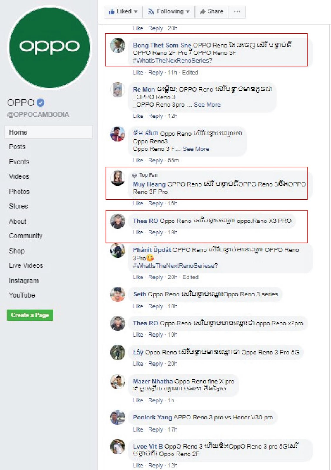 សម្រាប់ដើមឆ្នាំ 2020 នេះ ស្រាប់តែ ទំព័រហ្វេសប៊ុកផ្លូវការ របស់ក្រុមហ៊ុន OPPO ប្រចាំប្រទេសកម្ពុជា បានព្រឡូយឲ្យហ្វេនៗចូលរួមទស្សន៍ទាយនូវឈ្មោះពិតស្មាតហ្វូន OPPO Reno ស៊េរីបន្ទាប់ ជាថ្នូរនឹងរង្វាន់កម្មវិធីសម្ពោធផលិតផលជំនាន់ថ្មីរបស់ខ្លួន បើចឹងដឹងច្បាស់សូមចុចនៅត្រង់នេះ