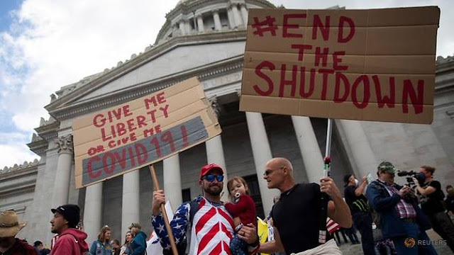 ប្រជាជនប្រមាណ ២,៥០០នាក់ បានប្រមូលផ្តុំគ្នានៅឯទីបញ្ជាការរដ្ឋវ៉ាស៊ីនតោន កាលពីថ្ងៃអាទិត្យ ទី១៩ ខែមេសា ដើម្បីប្រឆាំងនឹងបទបញ្ជាស្នាក់នៅផ្ទះទប់ទល់នឹងការរាលដាលនៃវីរុស COVID-19 របស់អភិបាលរដ្ឋលោក Jay Inslee ដែលមកពីបក្សប្រជាធិបតេយ្យ។ មិនត្រឹមតែបំពានបំរាមមិនឱ្យប្រមូលផ្ដុំលើសពី ៥០នាក់ នោះទេ ពួកគេជាច្រើនថែមទាំងទៅតវ៉ាដោយមិនពាក់ម៉ាស់ទៀតផង។ នេះបើយោតាមការចុះផ្សាយរបស់ រ៉យទ័រ សម្រាប់ថ្ងៃចន្ទ ទី២០ ខែមេសា ឆ្នាំ២០២០។