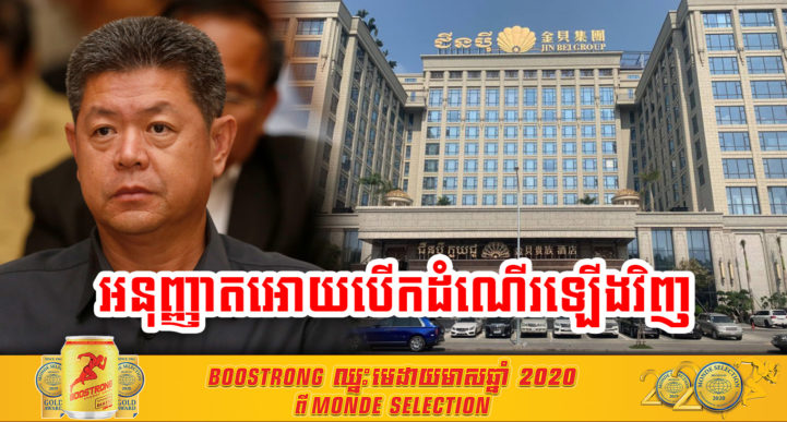 យោងតាមសេចក្តីសម្រេចរបស់រដ្ឋបាលខេត្តព្រះសីហនុ ដែលផ្សព្វផ្សាយមុននេះបានអោយដឹងថា រដ្ឋបាលខេត្ត បានសម្រេចការបញ្ចប់ជាមណ្ឌលចត្តាឡីស័ក និងអនុញ្ញាតឲ្យដំណើរការអាជីវកម្មឡើងវិញ នូវសណ្ឋាគារ-កាស៊ីណូ ចំនួន២ ដែលមានទីតាំងនៅក្នុងក្រុងព្រះសីហនុ ប៉ុន្តែត្រូវអនុវត្តឲ្យបានម៉ឺងម៉ាត់តាមវិធានការ “៣ការពារ និង៣កុំ” របស់សម្តេចតេជោ ហ៊ុន សែន នាយករដ្ឋមន្ត្រី និងសេចក្តីណែនាំរបស់ក្រសួងសុខាភិបាល។ សណ្ឋាគារ-កាស៊ីណូ ដែលត្រូវបានអនុញ្ញាតឲ្យដំណើរការអាជីវកម្មឡើងវិញនោះមានដូចជា សណ្ឋាគារ-កាស៊ីណូជីនប៉ី កួយជូន(ជូនប៉ី២) ដែលមានទីតាំងស្ថិតនៅវិថី២ធ្នូ សង្កាត់លេខ៤ ក្រុងព្រះសីហនុ និងសណ្ឋាគារហ័ងហ័្គនជាយី (Crowner Plaza Hotel) ដែលមានទីតាំងស្ថិតនៅផ្លូវលេខ២០០ សង្កាត់លេខ៤ ក្រុងព្រះសីហនុ៕